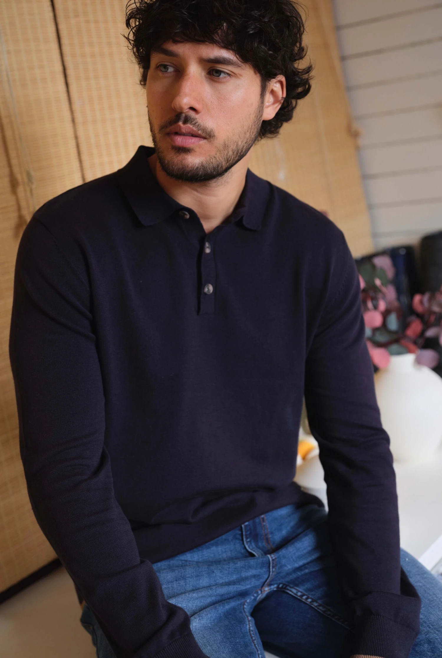 We love the Alden Long Sleeve Knitted Polo Shirt, this fits perfectly into our smart casual range. With minimal branding and sleek lines, this fine knit polo comes in three wearable colours and looks great with jeans or chinos.