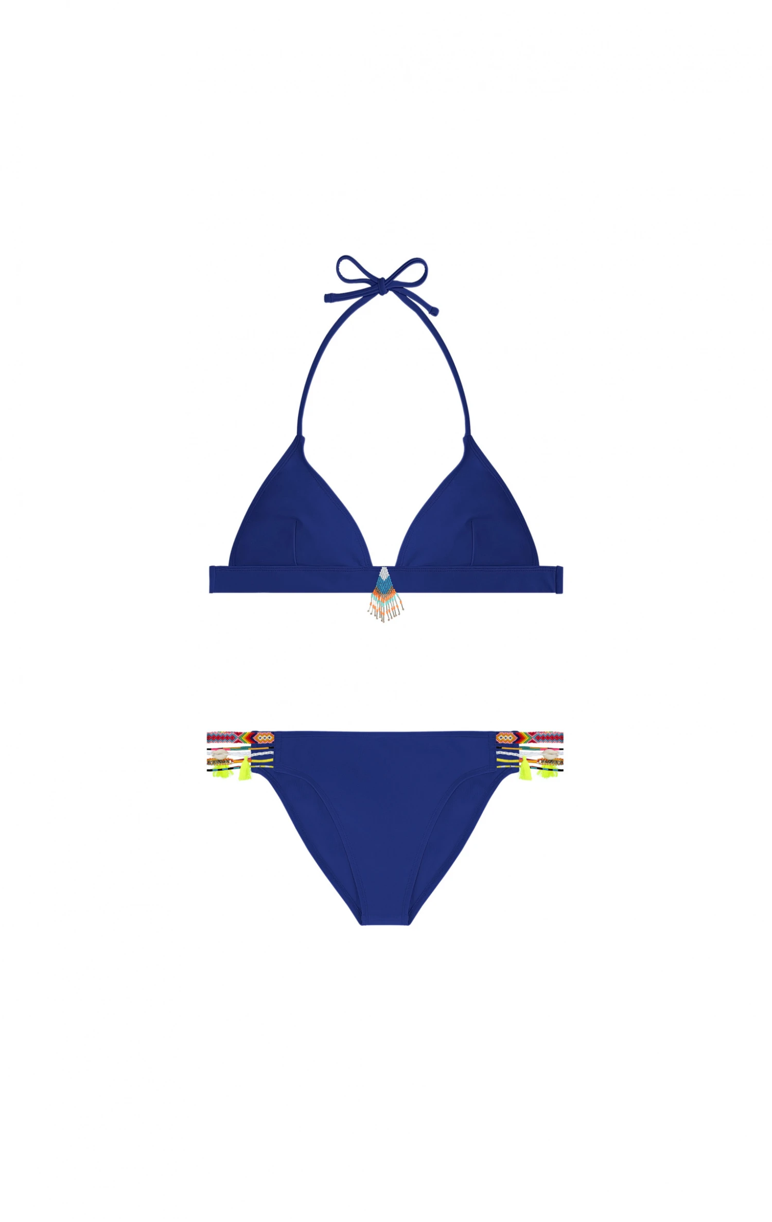 Maillot de bain deux pièces forme triangle, de couleur bleu marine.