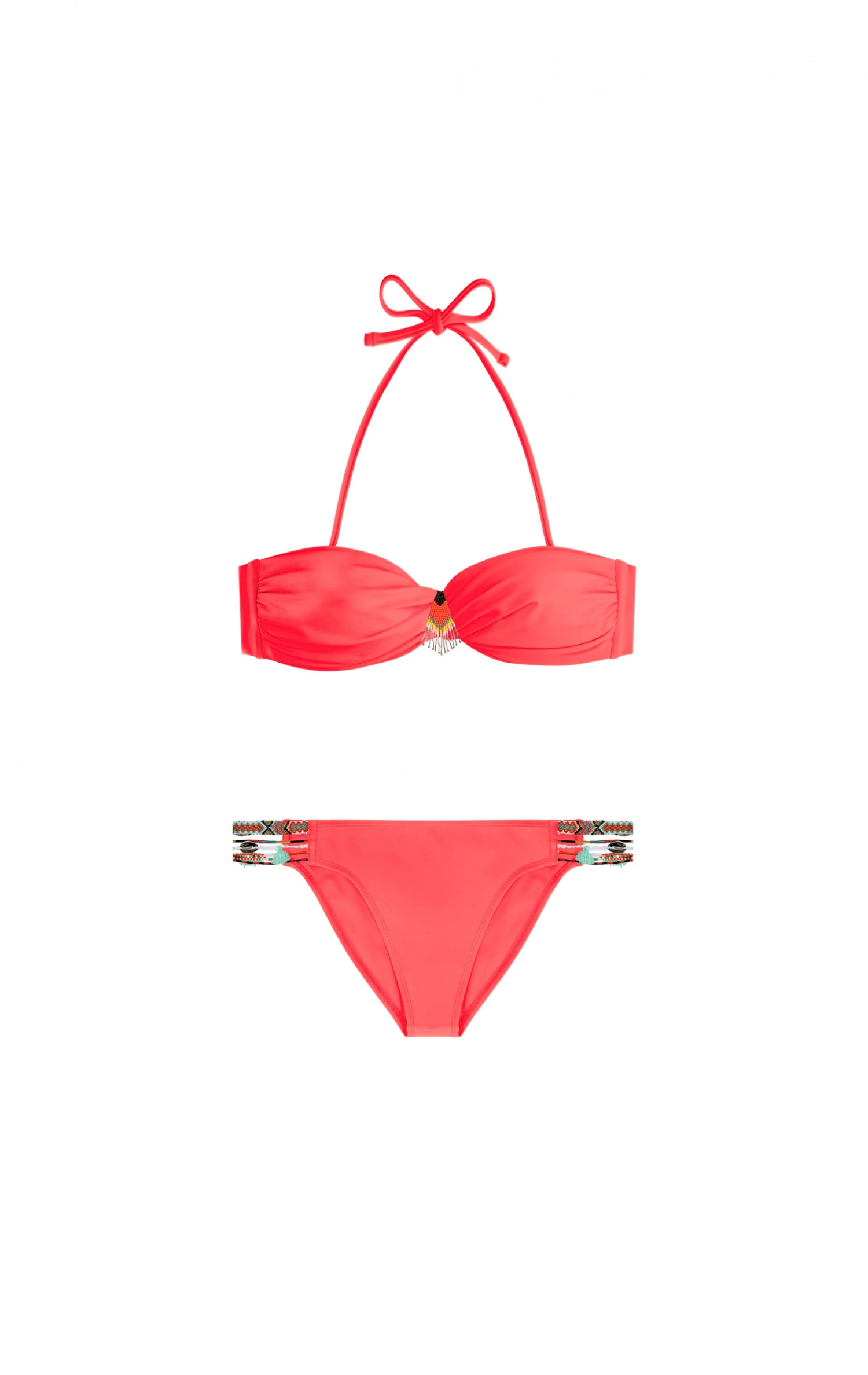 Maillot de bain deux pièces bandeau, couleur rouge.