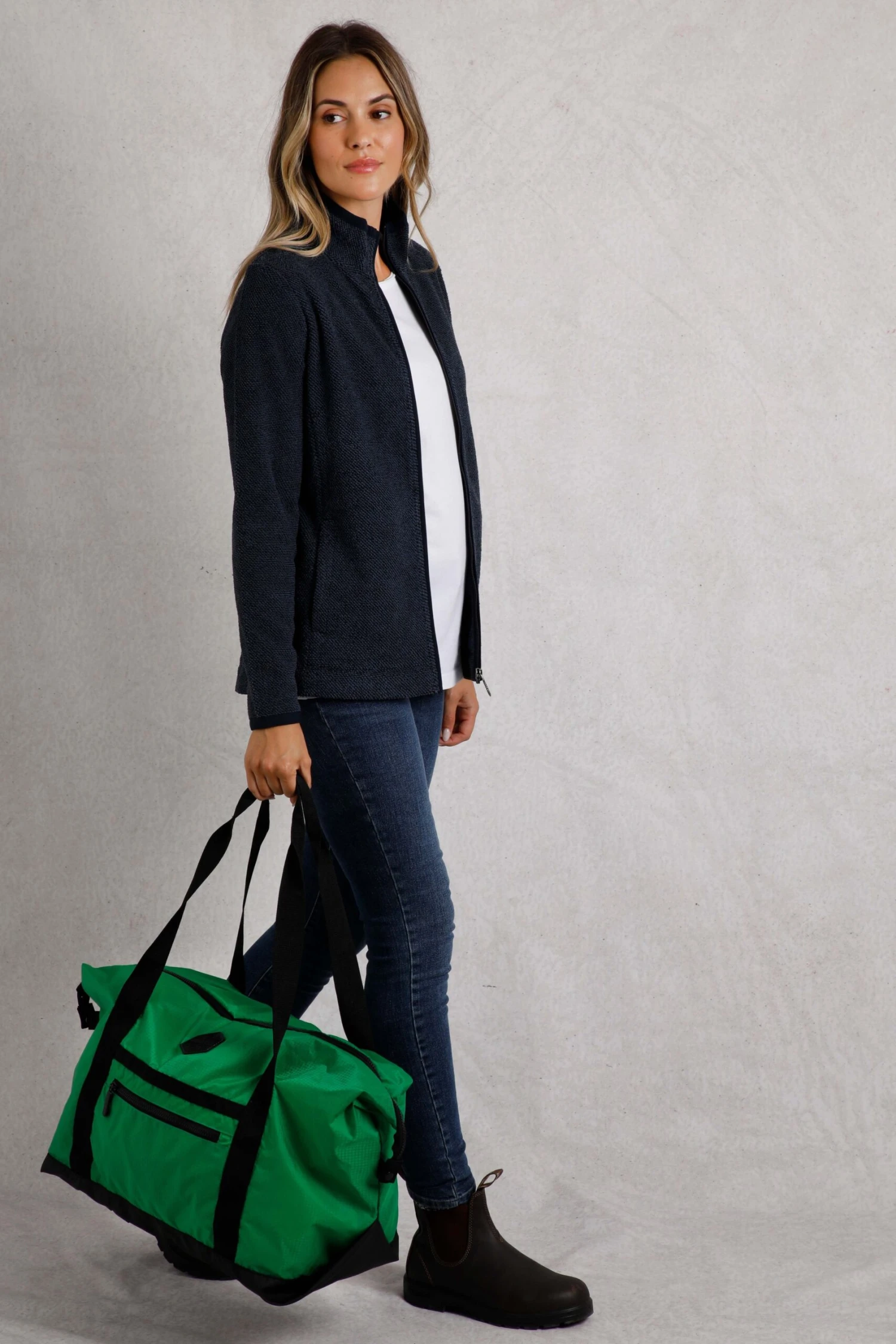 - Zipped front pocket