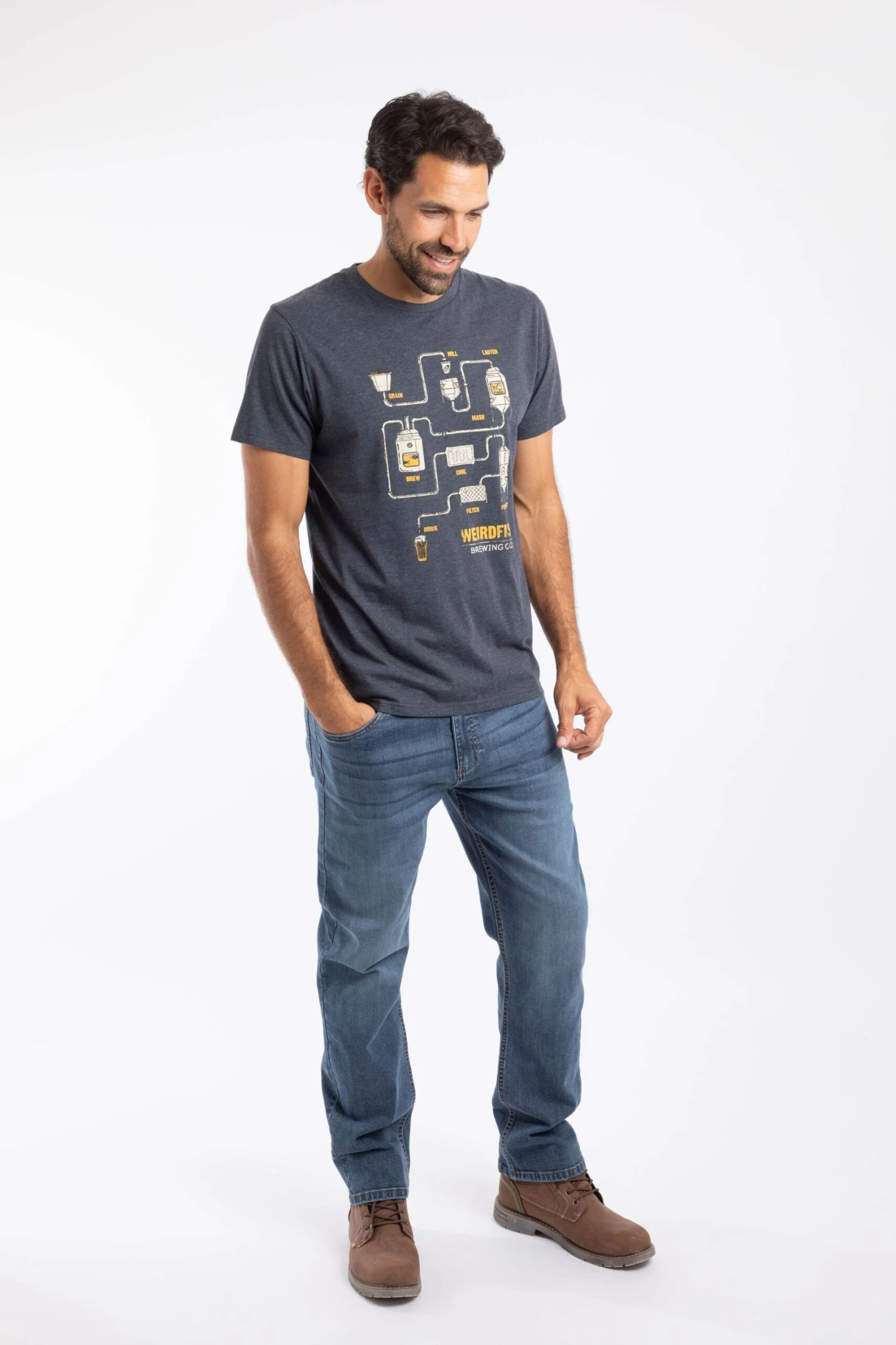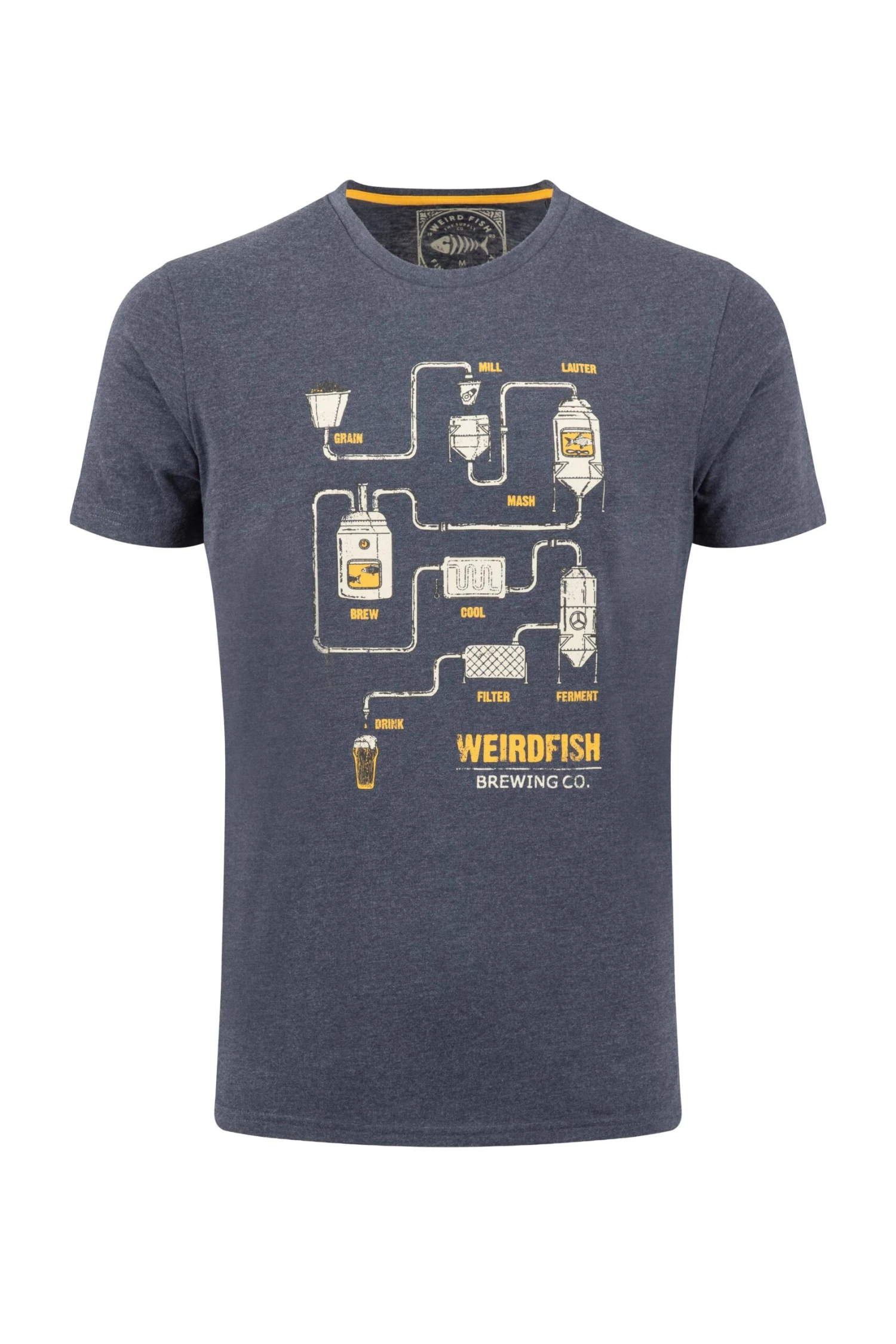 Love a good pint? Meet our new Brewer Front Print Graphic T-Shirt, featuring the full beer making process, with a little fishy twist. Made from a comfortable mix of cotton and polyester, with a subtle marl texture.