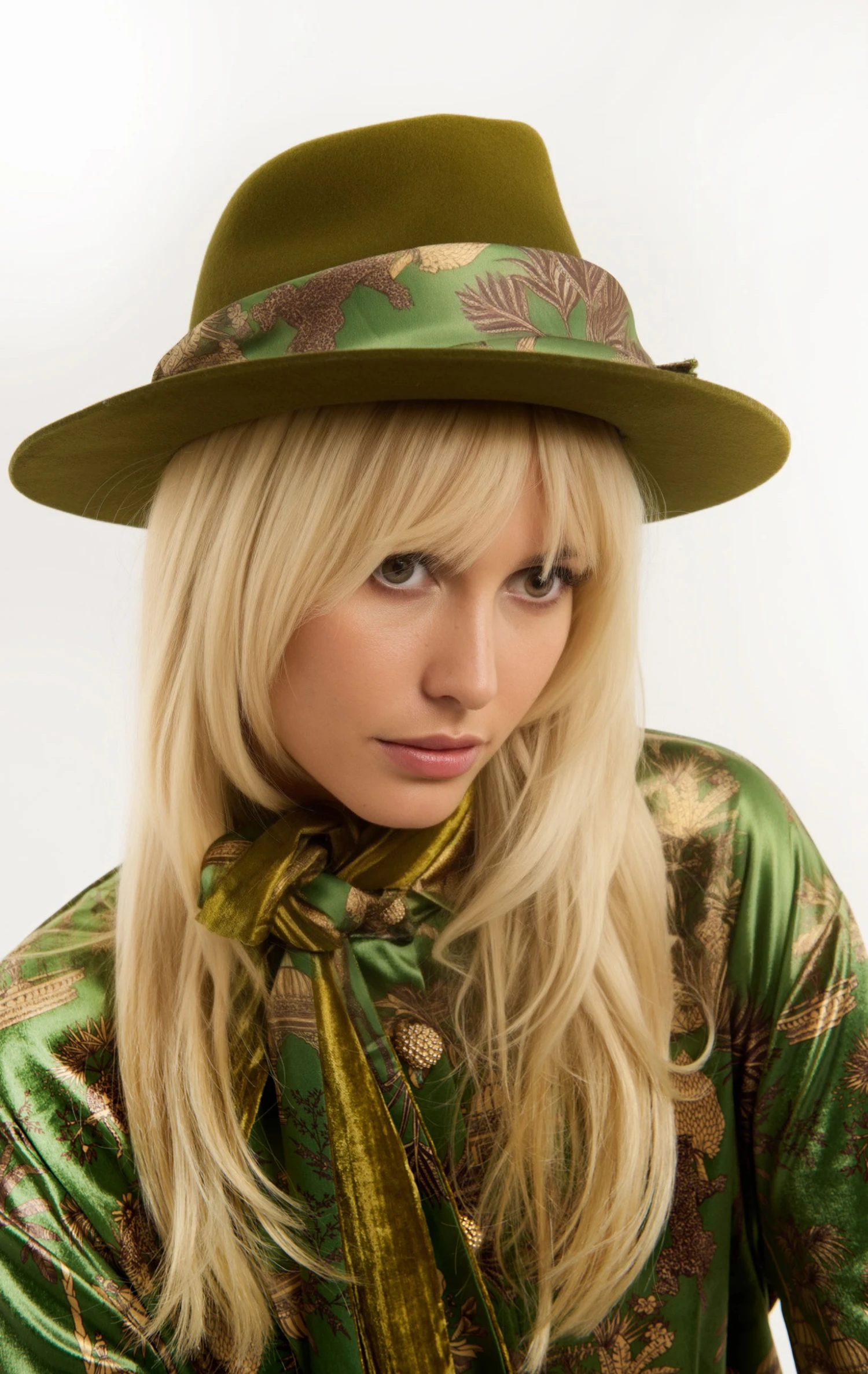 Neo, l’accessoire incontournable de la saison hivernale, se présente dans une teinte kaki et s’agrémente avec une grâce remarquable de notre foulard imprimé Amber Palace aux tons roses et kaki. Ajustable de l’intérieur, il se pose avec raffinement sur toutes les têtes, garantissant une tenue impeccable.