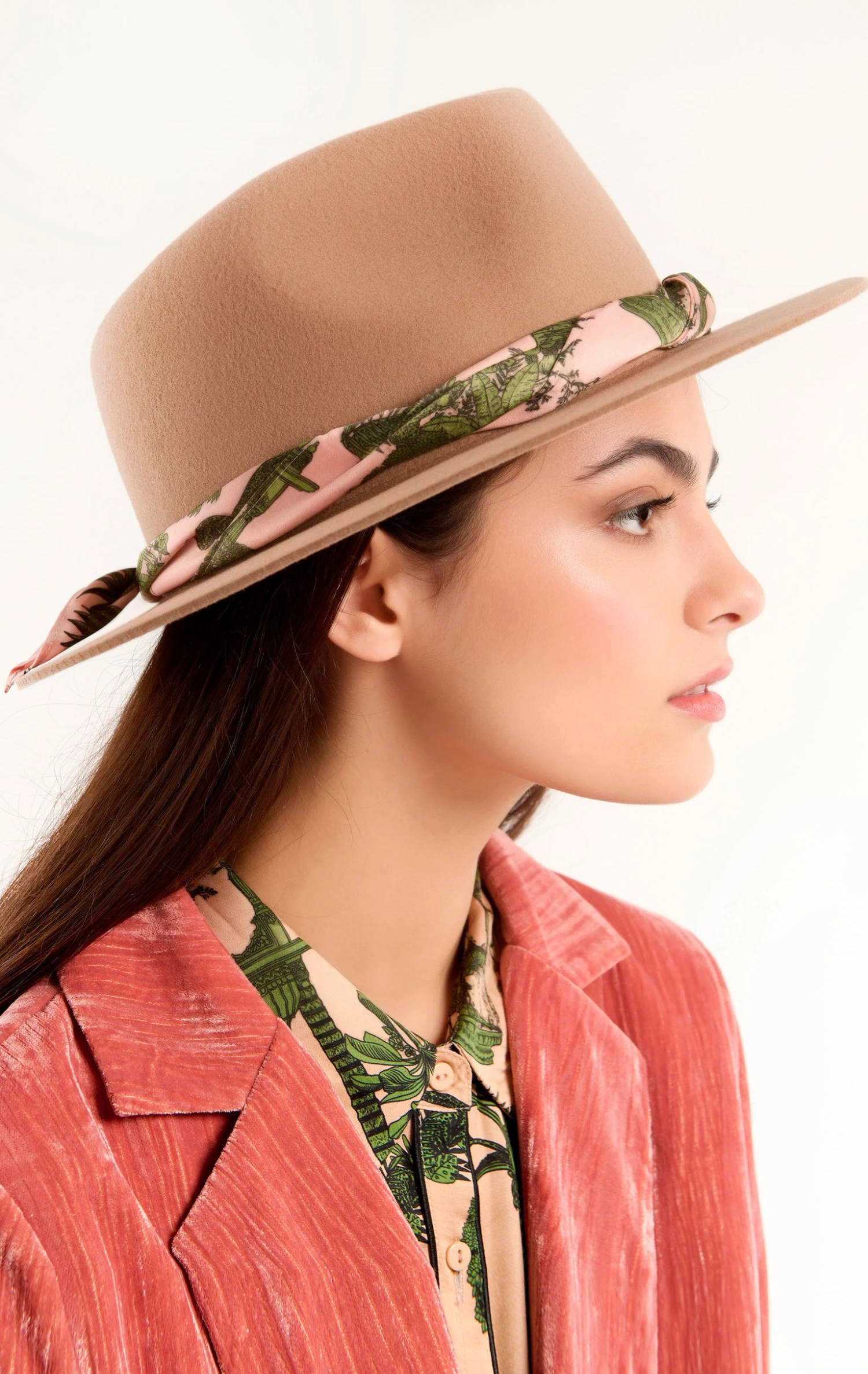 NEO, l’accessoire incontournable de la saison hivernale, se présente dans une teinte caramel et s’agrémente avec une grâce remarquable de notre foulard imprimé MAGIC INDIA aux tons multicolores. Ajustable de l’intérieur, il se pose avec raffinement sur toutes les têtes, garantissant une tenue impeccable.