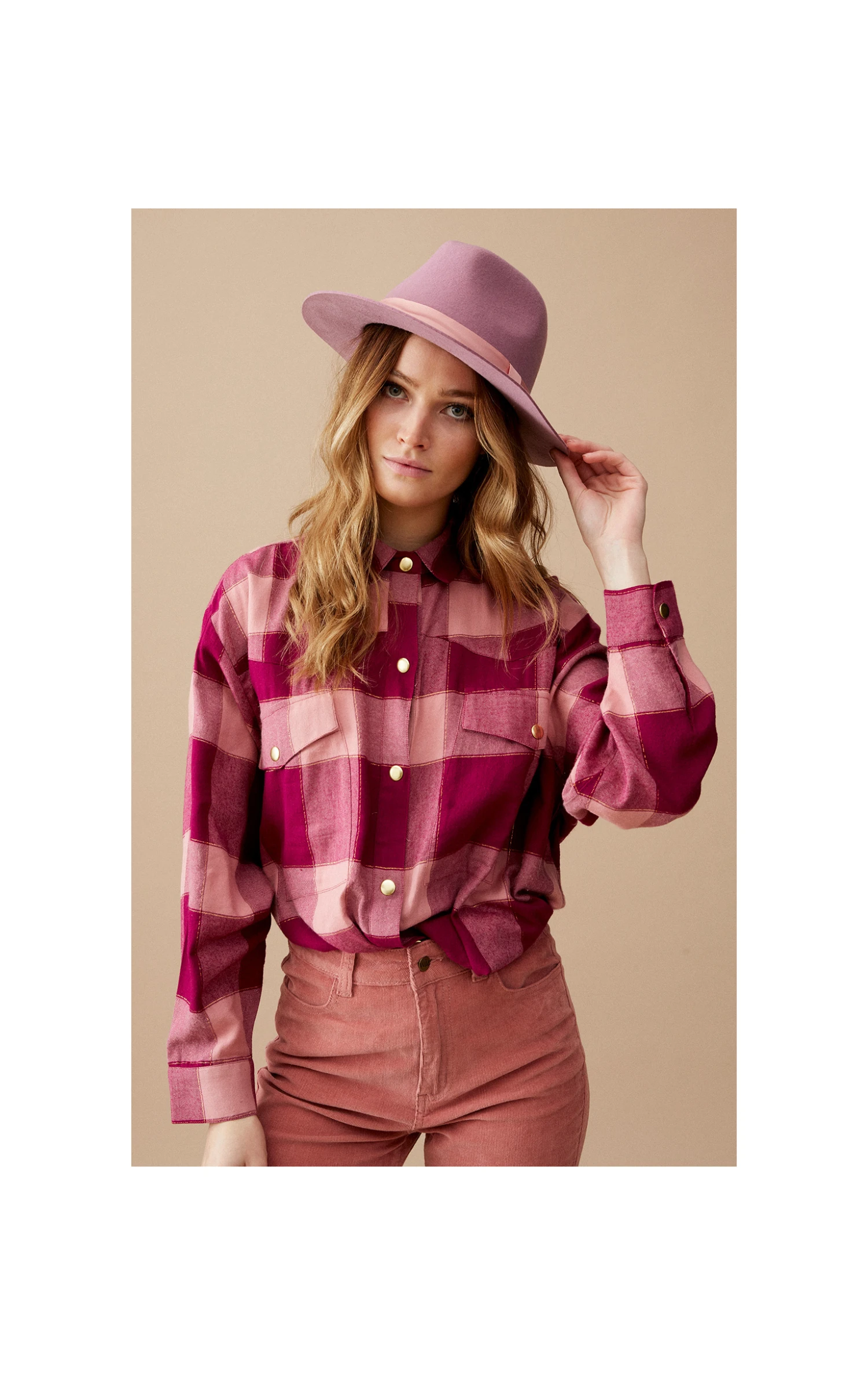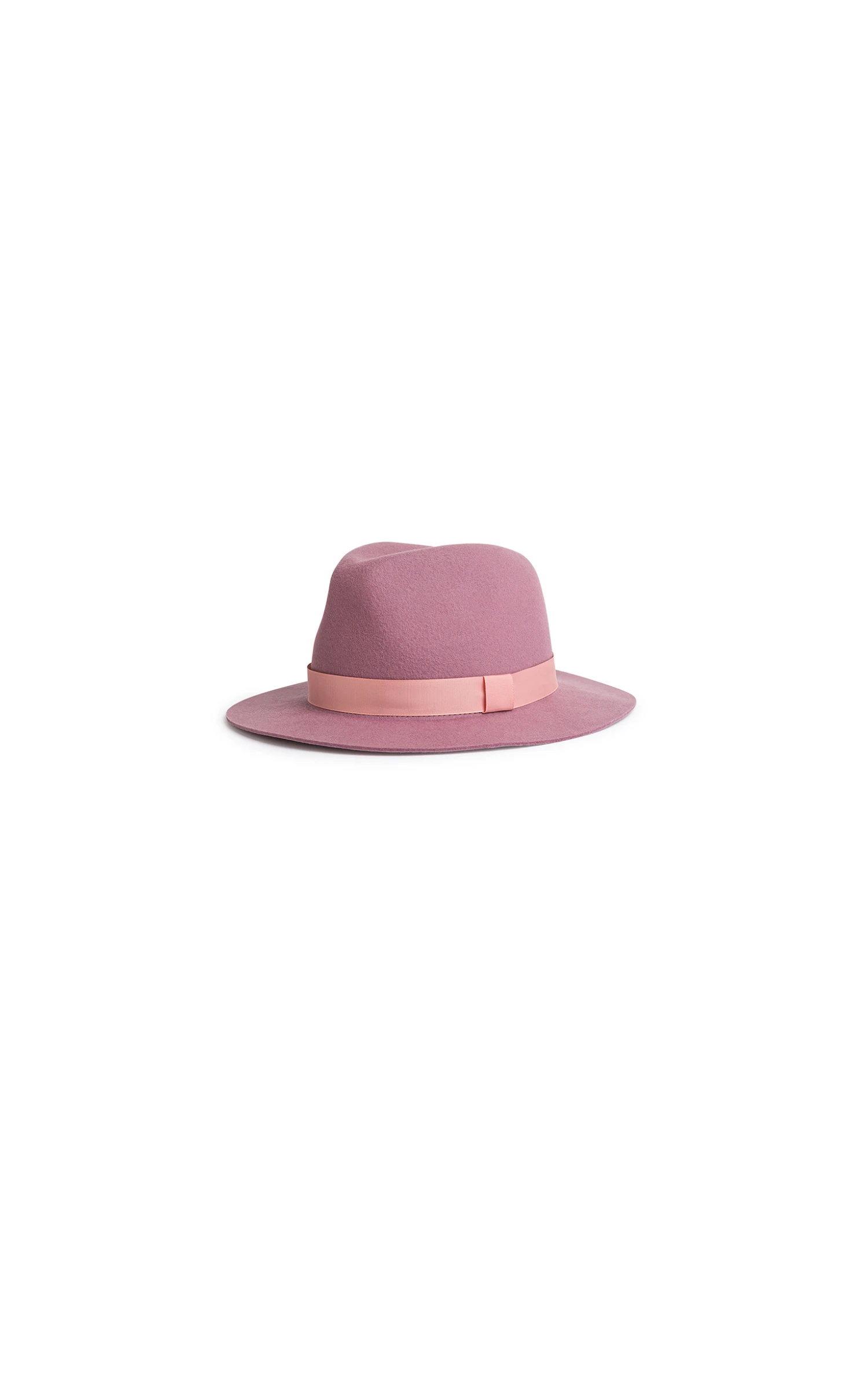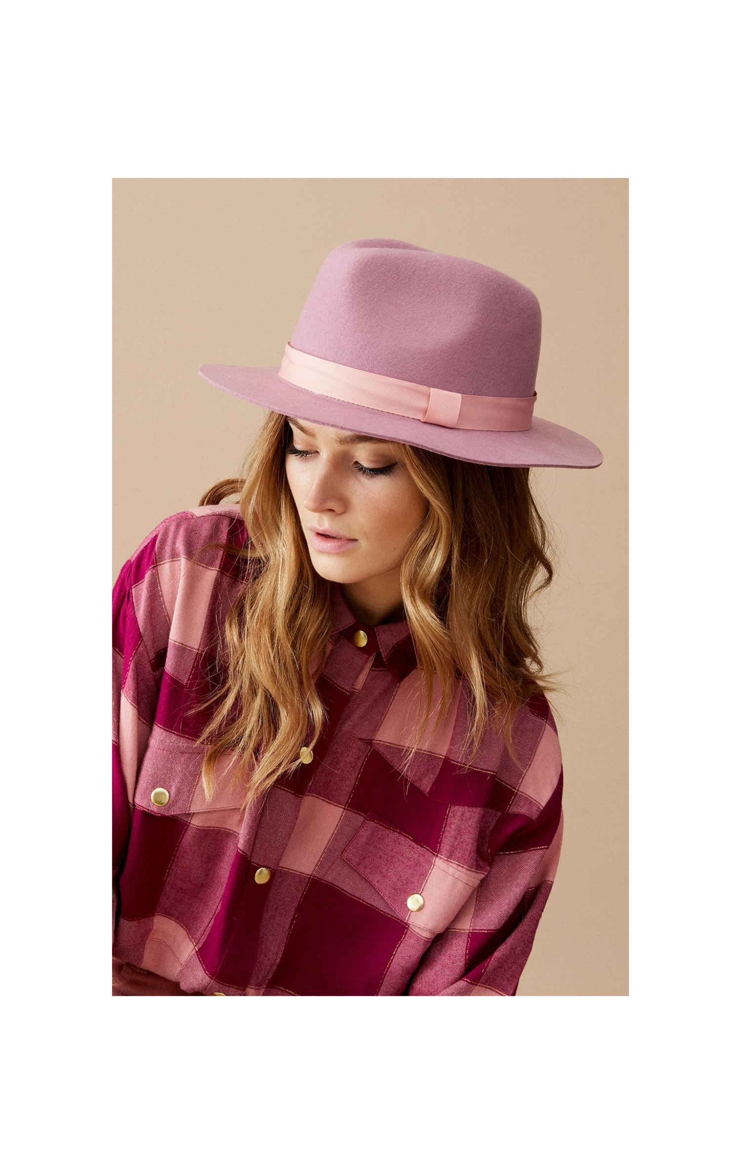 Chapeau en feutre de couleur lilas décoré d’un ruban rose. Vous allez adorer son look audacieux qui contraste avec la simplicité de cet accessoire.