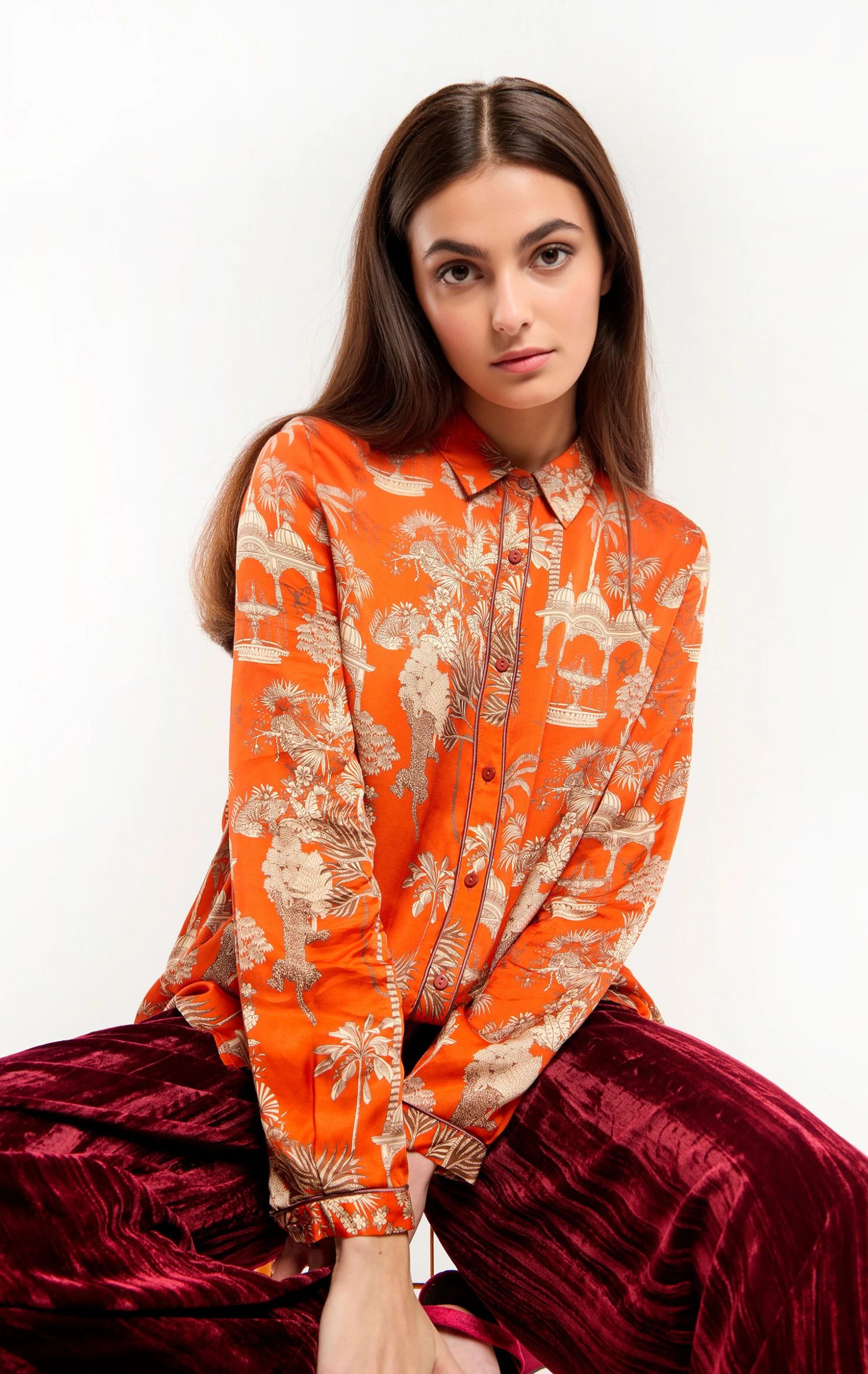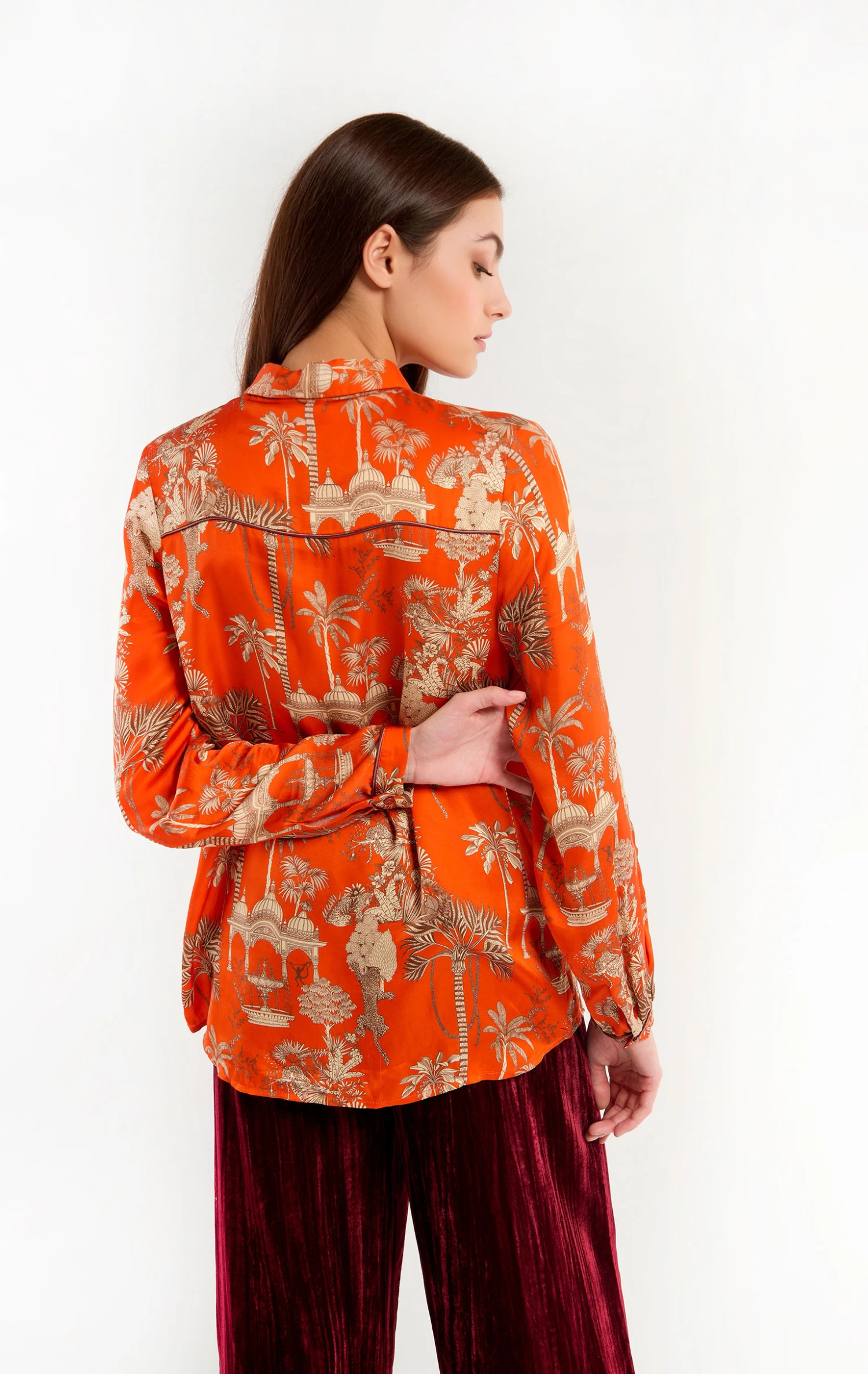 Son imprimé Jaipur rouge carmin aux motifs vanille et café se déploie en all over, avec élégance, sur un tissu délicieusement satiné. Sa forme ajustée et le piping qui descend de part et d’autre de la patte de boutonnage la structure avec élégance. En total look, portée avec le pantalon Rohan, ou dépareillée avec le pantalon Koffi ou la veste Kim, elle apportera un chic incroyable et unique à vos tenues. Declinée en 5 couleurs, on la retrouve ici dans un rouge carmin aux motifs vanille et cacao.