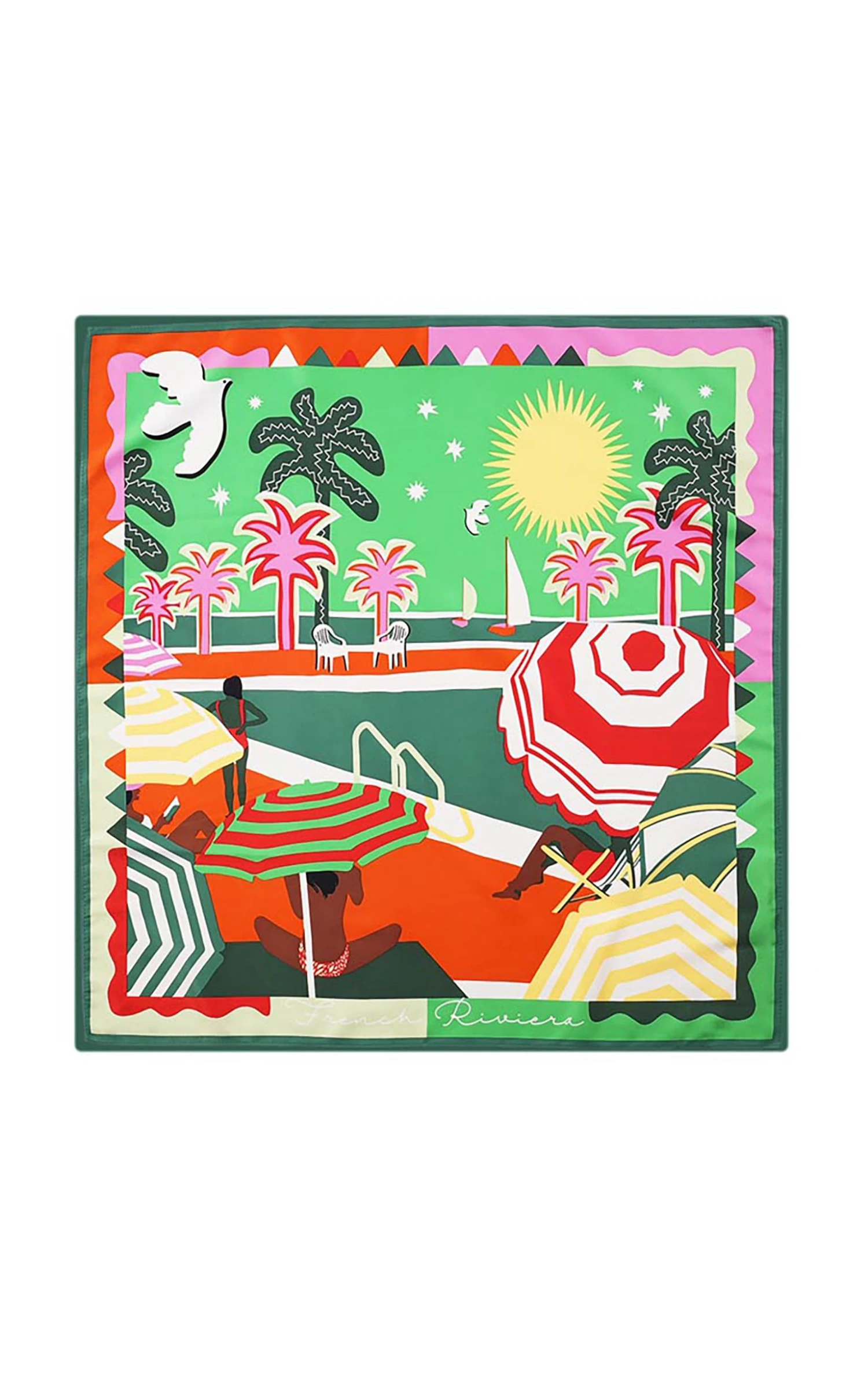 Vous est présenté ici l’imprimé Chachacha, qui se décline en trois coloris. Chachacha est un thème qui donne envie de farniente sur la French Riviera et de soirées d’été passées à se déhancher. Par des formes découpées sur des aplats de couleurs ultra naïfs Chachacha raconte, avec une forte identité, un moment suspendu au cœur de l’été où palmiers stylisés, parasols à rayures et baigneuses se retrouvent dans une esthétique colorée et naïve, clin d’œil au talent génial de Matisse. Elles se parent de couleurs très pop : vert prairie, vert kaki, orange flamboyant, rose bonbon et vert bouteille.