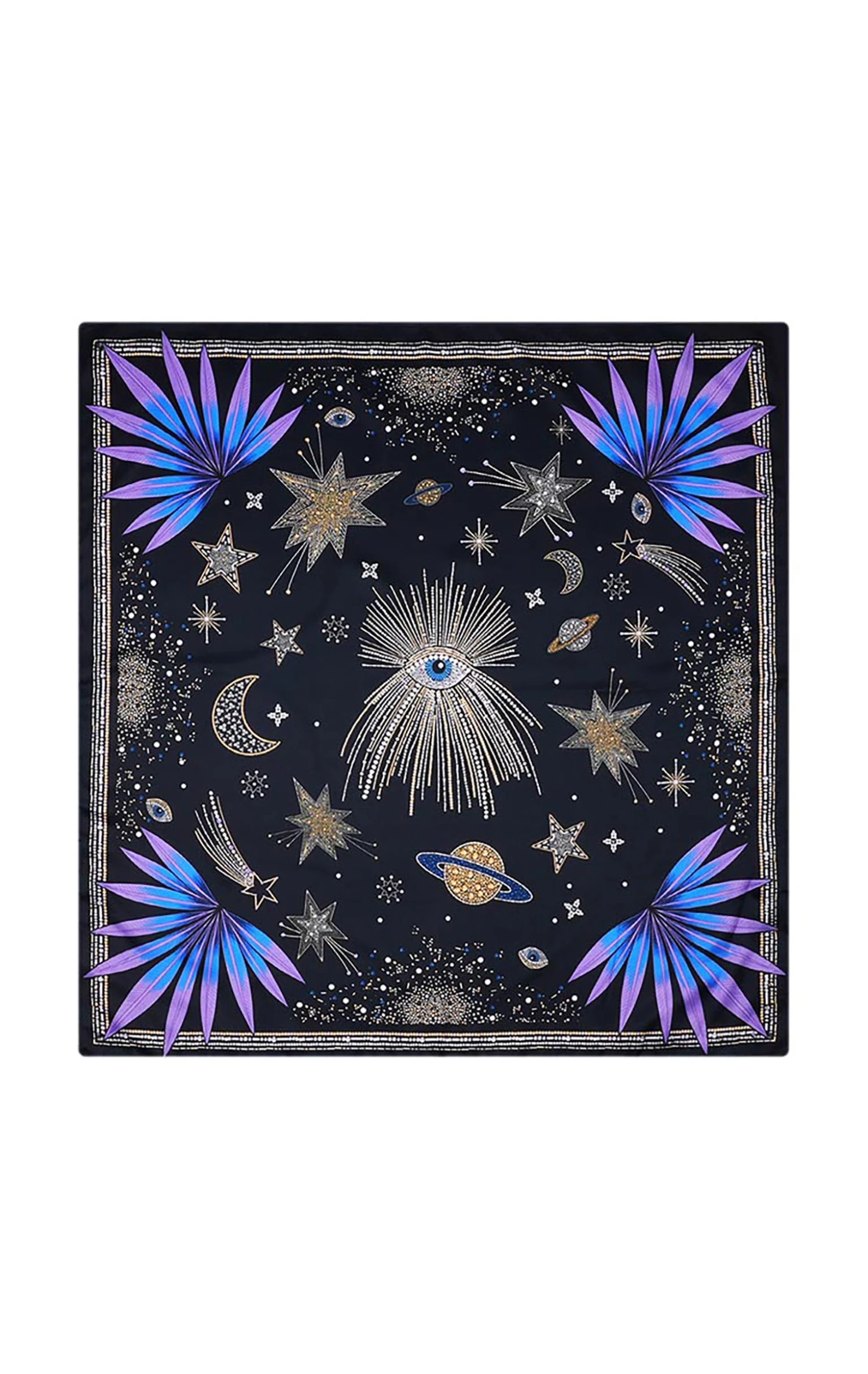 Vous est présenté ici l’imprimé Comète, qui se décline en 4 coloris. Orné d’une aura céleste, l’imprimé Comète se présente comme une constellation émanant autour de l’œil protecteur emblématique de notre thème. Dessiné entièrement en perles, strass et perles de rocaille, le motif de notre imprimé Comète évoque les bijoux d’HIPANEMA. Des nuances dorées et argentées ponctuées de subtiles touches de bleu et de violet ornent le fond uni noir de notre imprimé Comète noir.