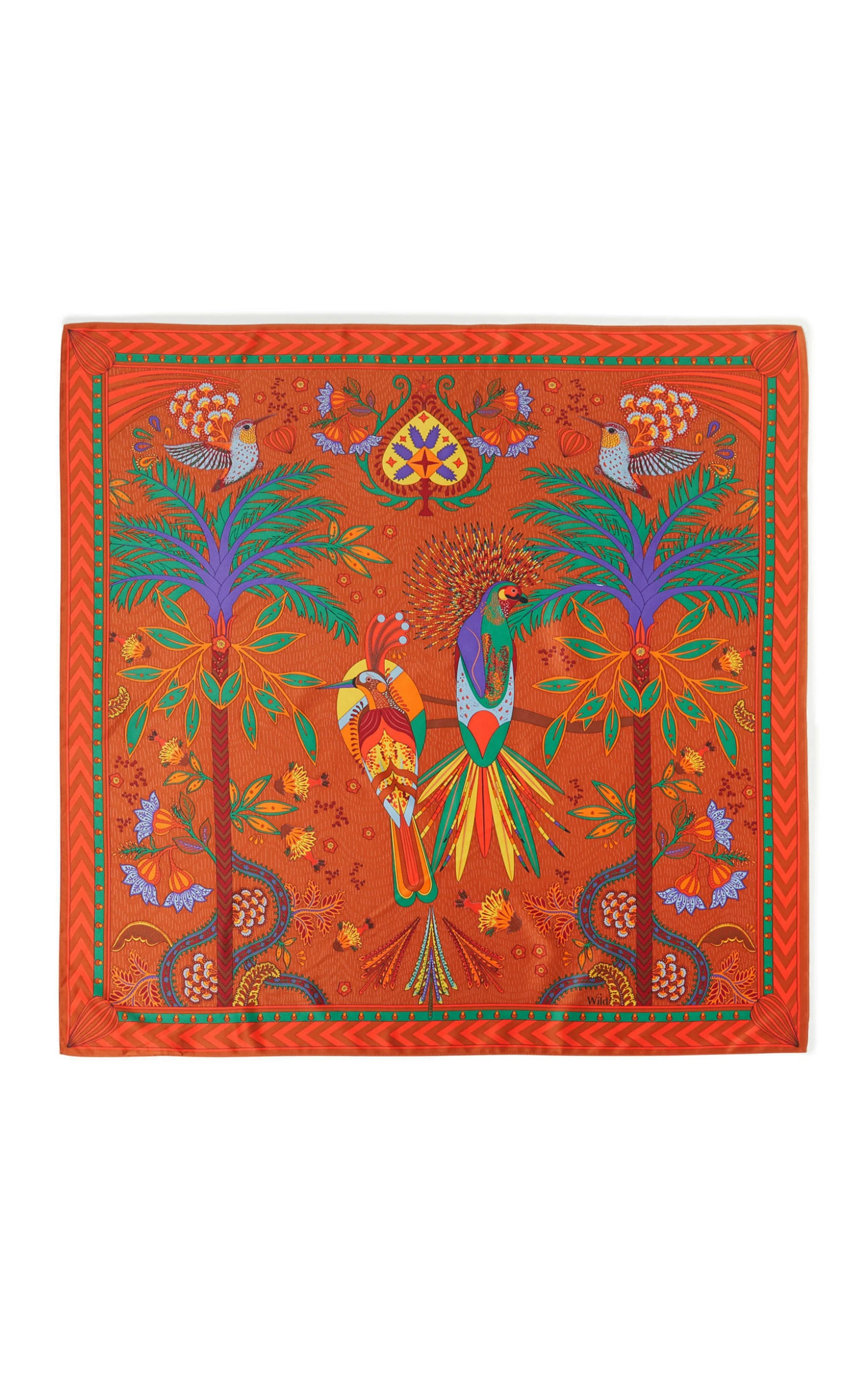 Vous est présenté ici le foulard Magic India, pièce maîtresse de la collection puisque son imprimé est aussi décliné sur tout un vestiaire de notre collection de prêt à porter. Il se décline en 5 coloris: ici dans sa version Terracota avec un fond brique et sa combinaison de couleurs bleu Klein, violet, orange, acier et rouge. L’essence principale du thème MAGIC INDIA évoque un pays enchanteur, où une faune et une flore opulentes se déploient, parmi lesquelles émergent notre palmier adoré, des oiseaux de paradis et des plantes somptueuses. Peut se porter en foulard ou paréo selon le format, ou encore autour du cou, autour de la taille, en turban, ou encore autour de votre sac.