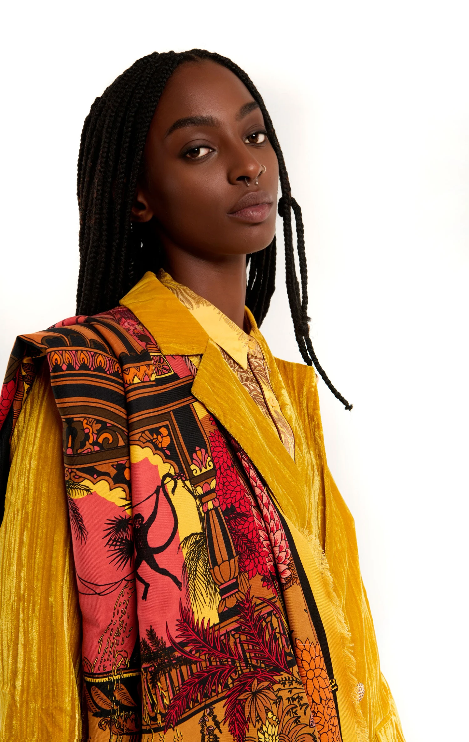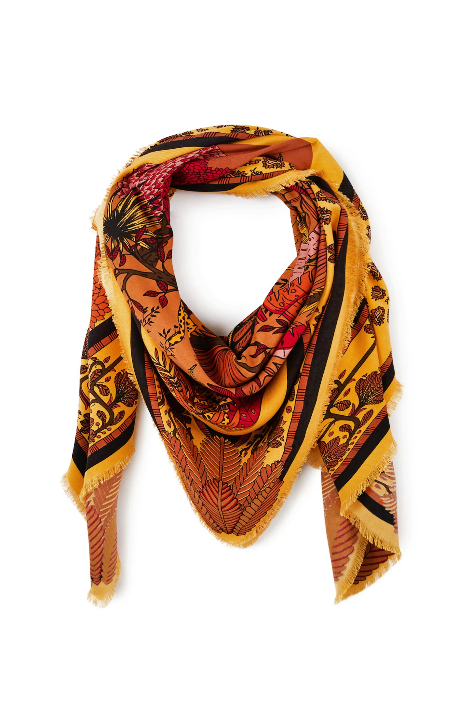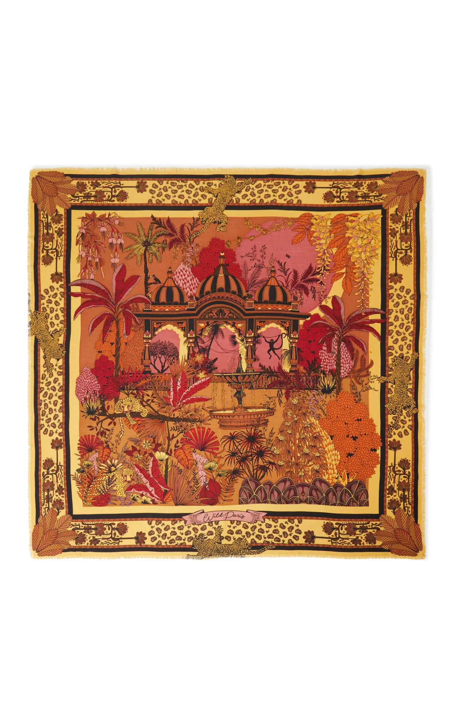Il vous est présenté ici l’imprimé Amber Palace, qui se décline en 3 coloris: une version ocre sur fond bleu cyan et une combinaison de couleurs vert bouteille, rouge, violet et orange. L’essence principale du thème Amber Palace se reflète dans les symboles emblématiques de la terre et de la culture indiennes : les domes délicatement ouvragés rappelant de la dentelle et une végétation luxuriante, notamment des palmiers somptueux, chers à la marque. Peut se porter en foulard ou paréo selon le format, ou encore autour du cou, autour de la taille, en turban, ou encore autour de votre sac.