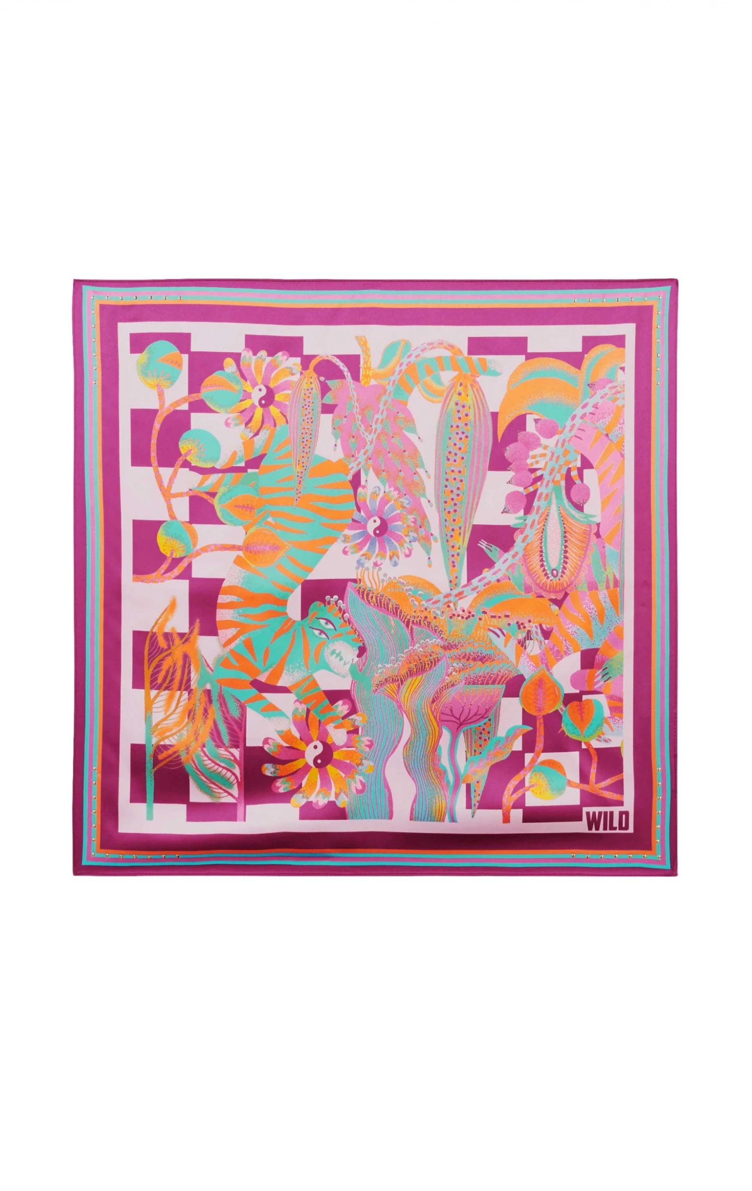 Nos foulards sont faits à la main et sont parés de dessins originaux destinés à sublimer votre garde-robe. Il vous est présenté ici un imprimé original réalisé en collaboration avec une illustratrice, reprenant ses thèmes de prédilection où se mêlent créatures fantastiques et fond géométrique structuré noir et blanc, dans des couleurs très saturées, toujours cerclées de noir et de beige. On aime cet univers très pop, aux rappels asiatiques avec le yin et le yang et un tigre-chimère, pour un rendu très féminin et moderne. Peut se porter en foulard autour du cou, autour de votre poignet, ou encore autour de votre sac.