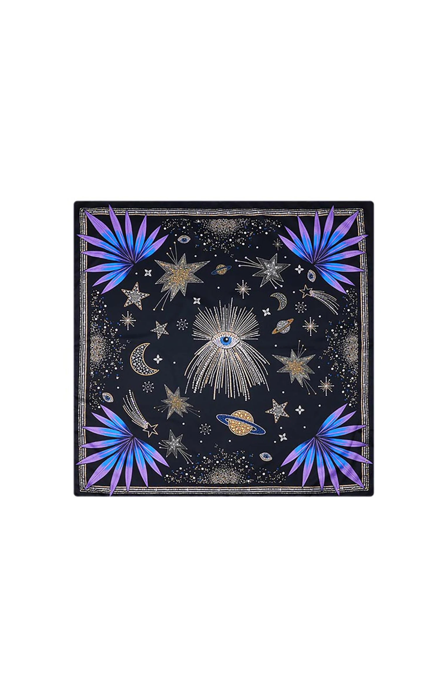Vous est présenté ici l’imprimé Comète, qui se décline en quatre coloris. Orné d’une aura céleste, l’imprimé Comète se présente comme une constellation émanant autour de l’œil protecteur emblématique de notre thème. Dessiné entièrement en perles, strass et perles de rocaille, le motif de notre imprimé Comète évoque les bijoux d’HIPANEMA. Des nuances dorées et argentées ponctuées de subtiles touches de bleu et de violet ornent le fond uni noir de notre imprimé Comète noir.