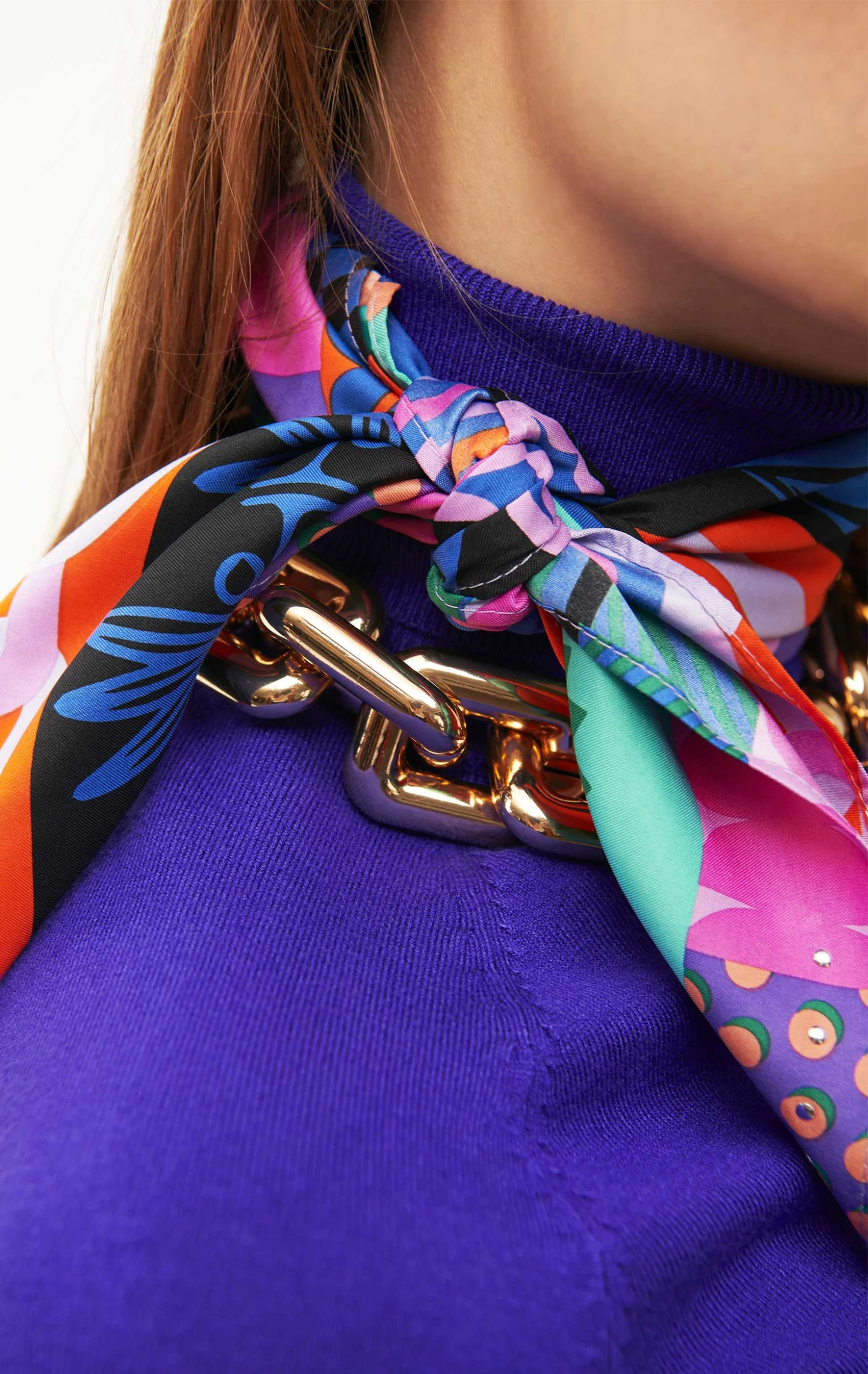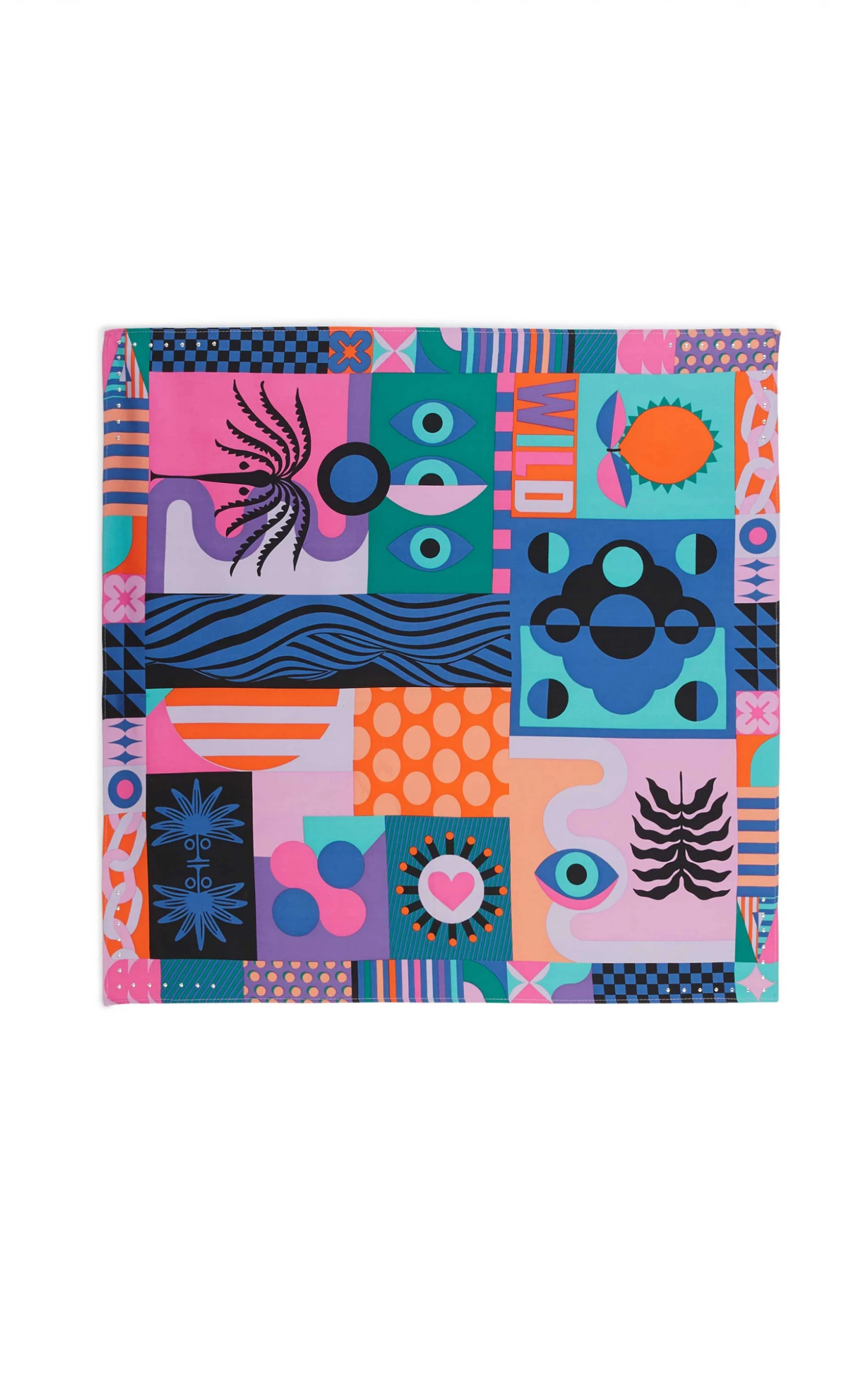 Nos foulards sont faits à la main et sont parés de dessins originaux destinés à sublimer votre garde-robe. Il vous est présenté ici un imprimé représentant un dessin à l’esprit très graphique, tout en motifs géométriques, qui se décline ici dans des tonalités multicolores, ou un medley de couleurs arc-en-ciel. On aime cet univers de patchwork digital d’inspiration années 90. Peut se porter en foulard autour du cou, autour de votre poignet, ou encore autour de votre sac.