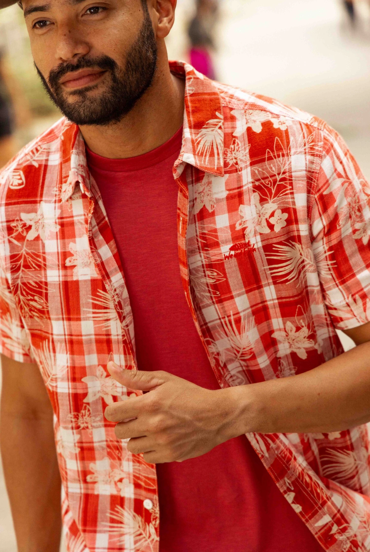 When the Hawaiian shirt met the check shirt the Nasser vintage wash check shirt was born. We have taken our popular woven check short sleeve shirt design, added a subtle screen printed Hawaiian shirt print over the top, then given the whole thing a vintage wash, to give you that really soft, comfortable feel, this is coming out for the first BBQ of the season for sure!