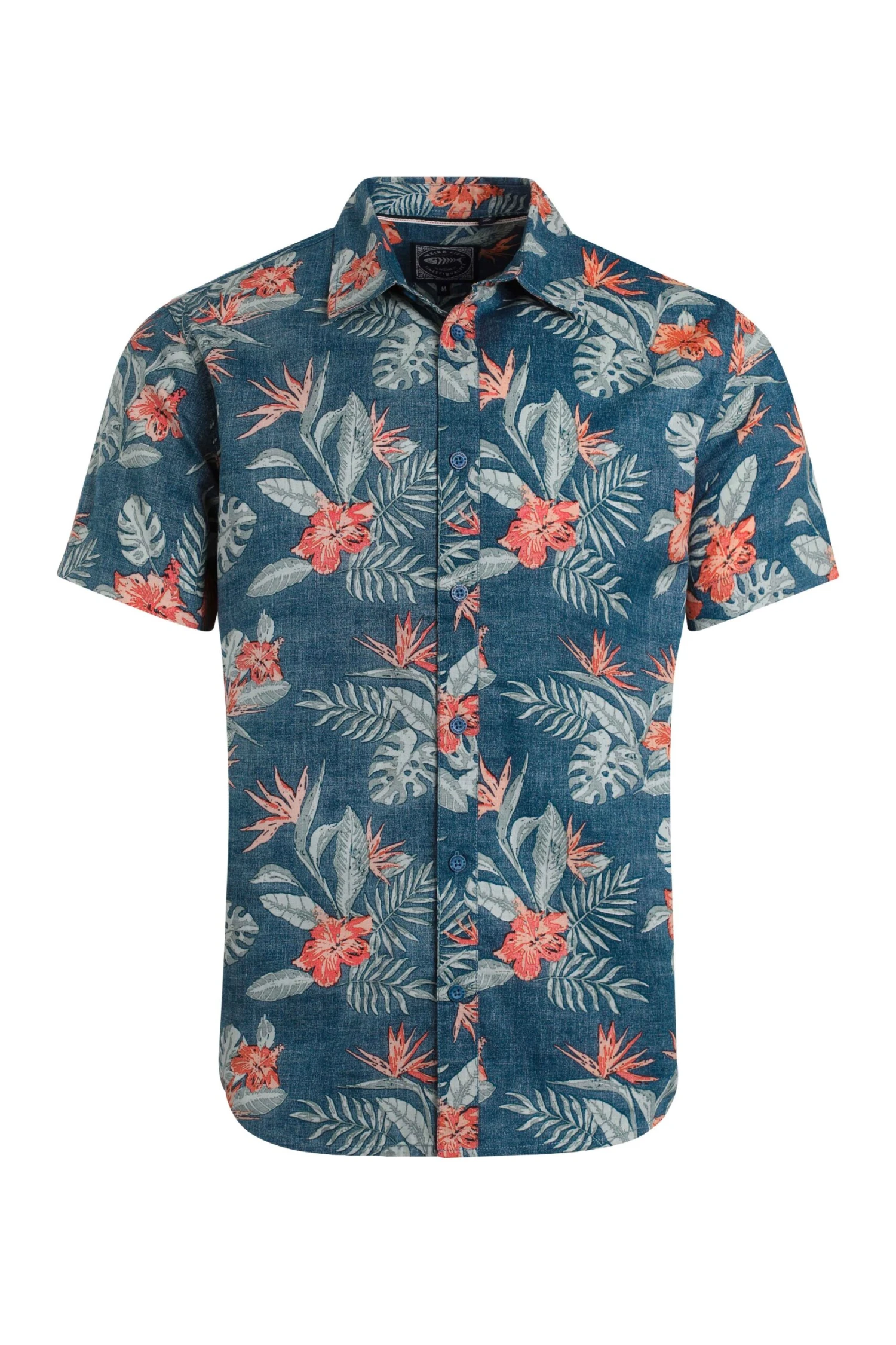 Our Palm Short Sleeve Reverse Print Shirt is the perfect addition to your warmer weather wardrobe. Featuring an all over Summer-inspired print, this shirt is a must-have for those who love something a little different. Wear with your favourite shorts and flip flops for the ultimate holiday-ready look. The reverse print gives a knocked-back, washed out feel to this fun, Hawaiian style shirt.