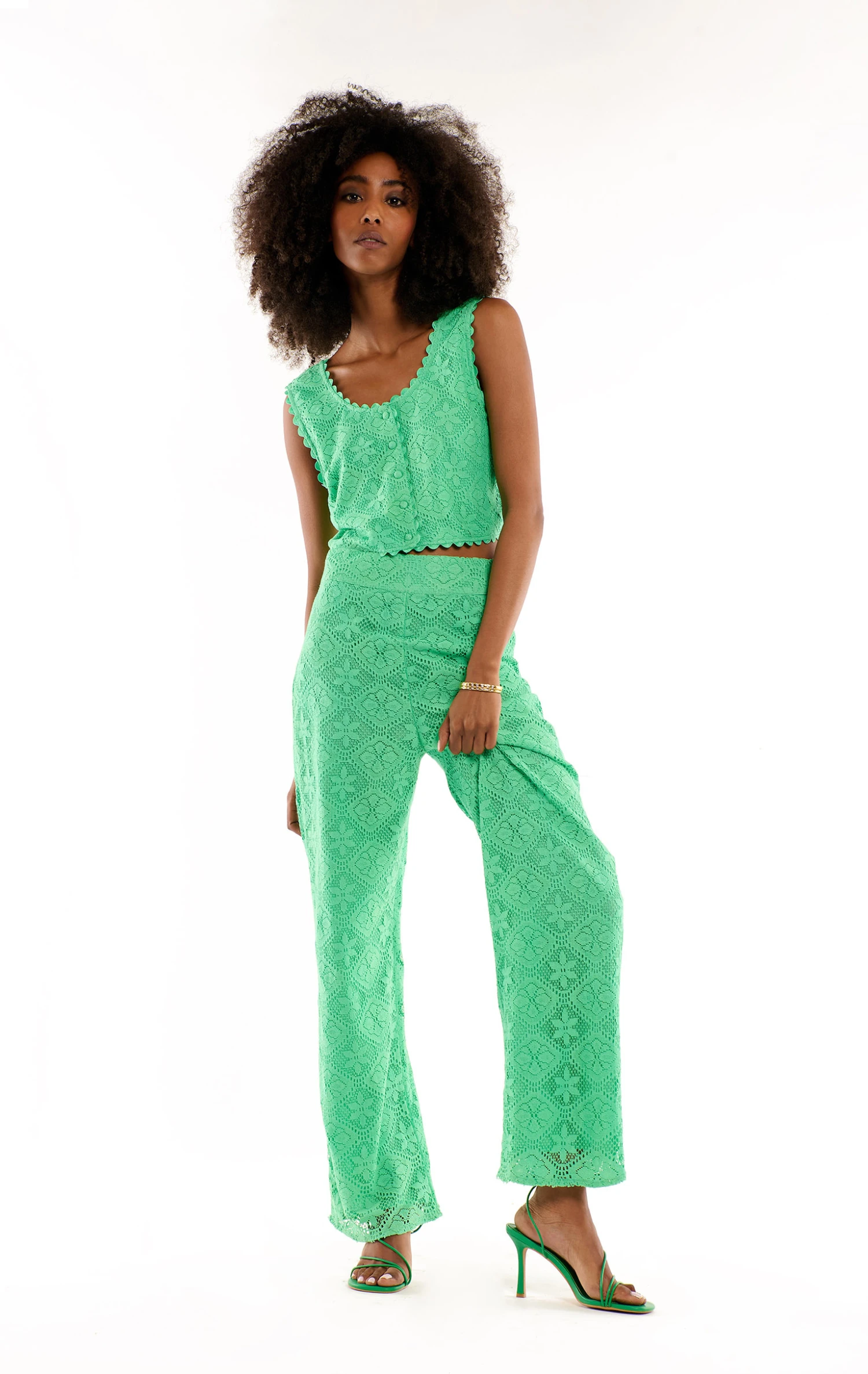 On parfait notre look 70’s avec ce superbe pantalon en léger crochet dentelle qui flatte délicieusement notre silhouette.