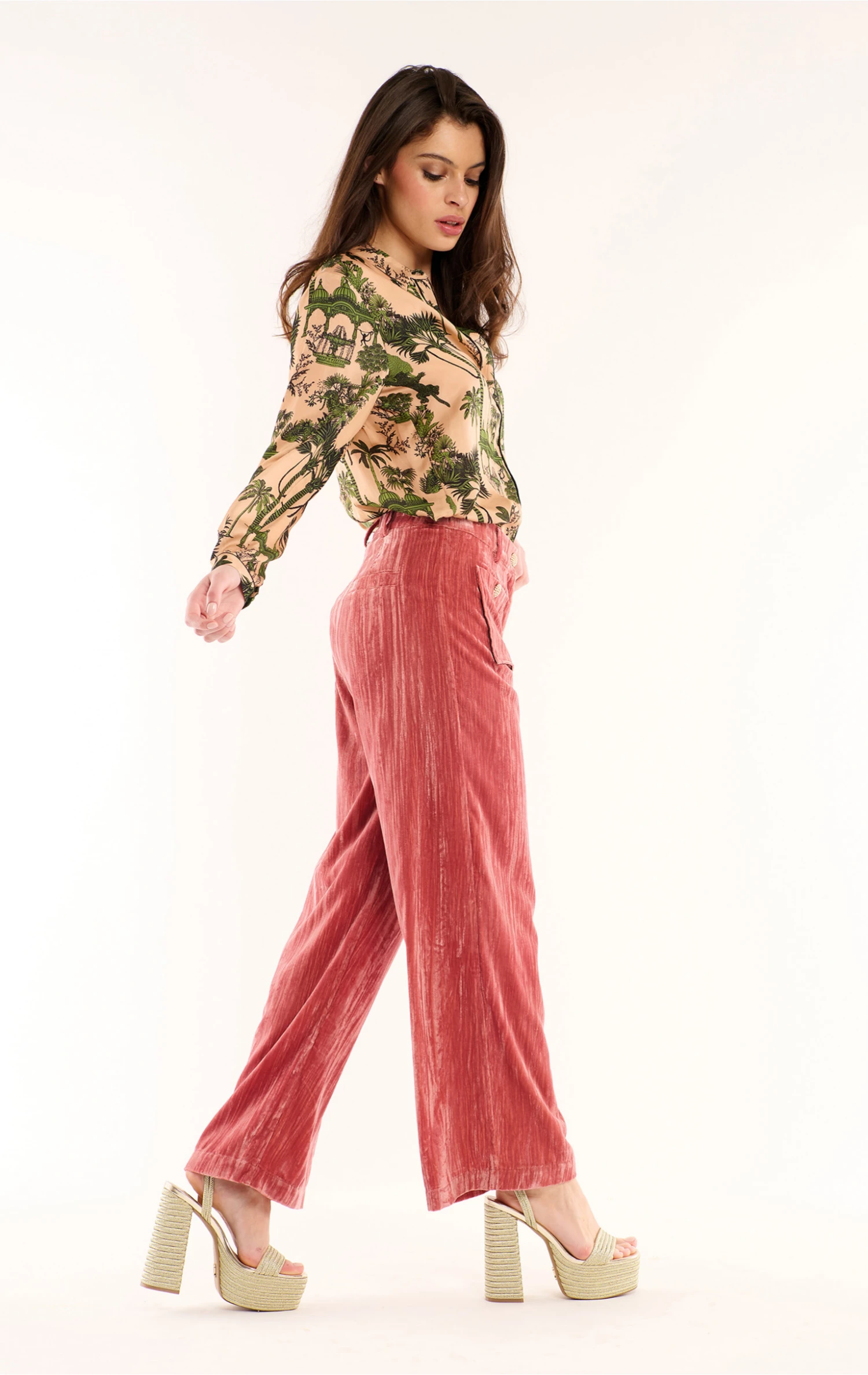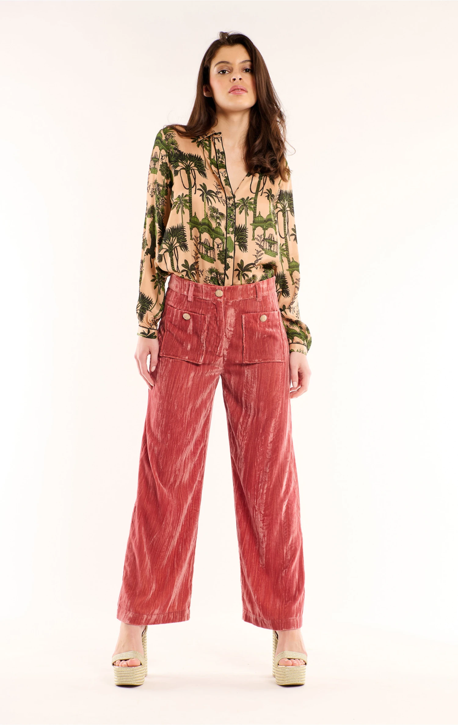 Son velours souple lui confère une élégance chic, tandis que l’absence de poches assure une belle fluidité sans compromettre la silhouette. Notre imprimé emblématique Jaipur s’est glissé sur la ceinture élastiquée et apporte ainsi une douce sophistication à l’ensemble. Associé à la veste assortie Kim, il se pare d’une élégance rétro exceptionnelle. Il se décline en 5 couleurs, ici dans un velours vieux rose, blush.