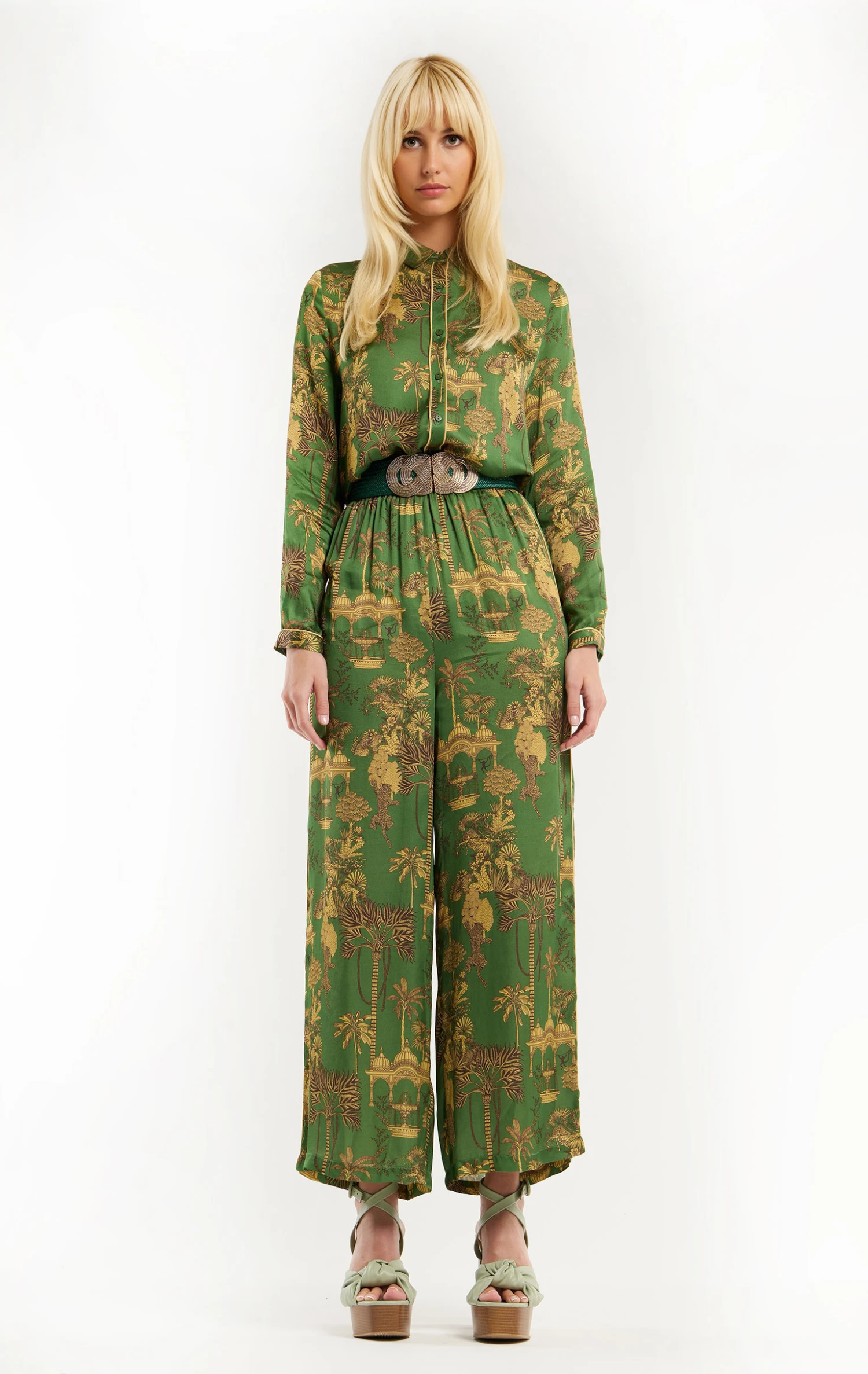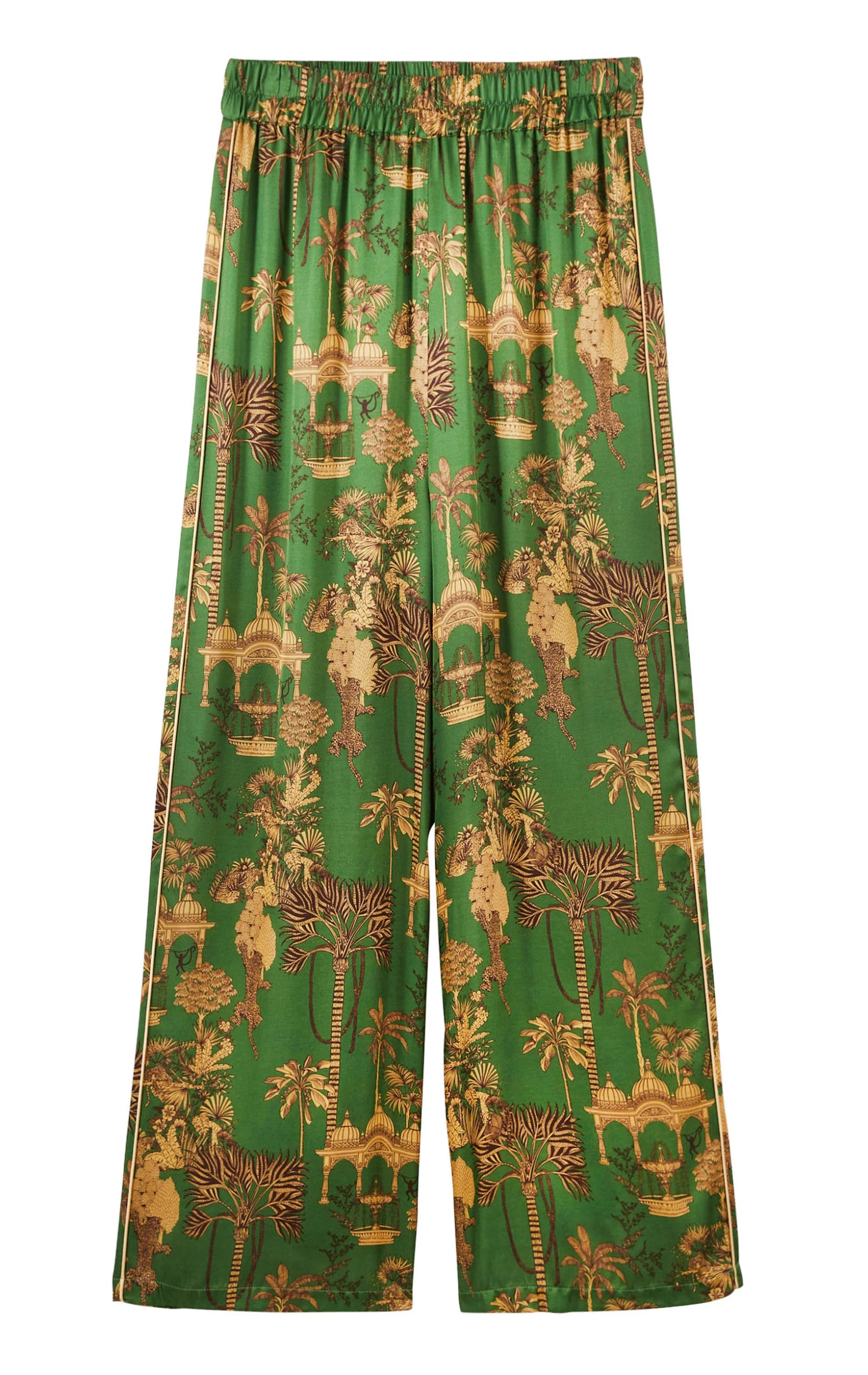 Les tons chauds et luxuriants s’harmonisent avec des nuances plus subtiles et raffinées sur notre imprimé Jaipur. Notre emblématique pantalon Rohan, à la fois chic et confortable grâce à sa couple ample élastiquée à la taille, offre une élégance décontractée avec son imprimé rétro des années 60 et son piping le long de la jambe. Pile poil dans la tendance pyjama de ville, il se mixe avec la chemise Mani pour un total look. Disponible en 5 couleurs, ce modèle, ici dans un vert olive kaki profond aux motifs vanille et café, est la pièce incontournable de votre vestiaire hivernal.