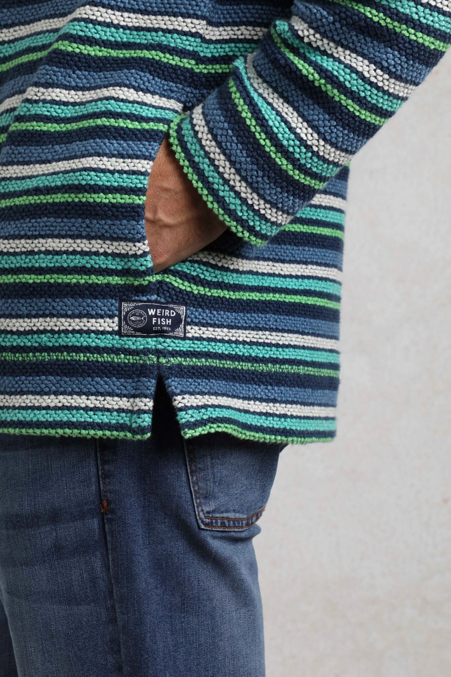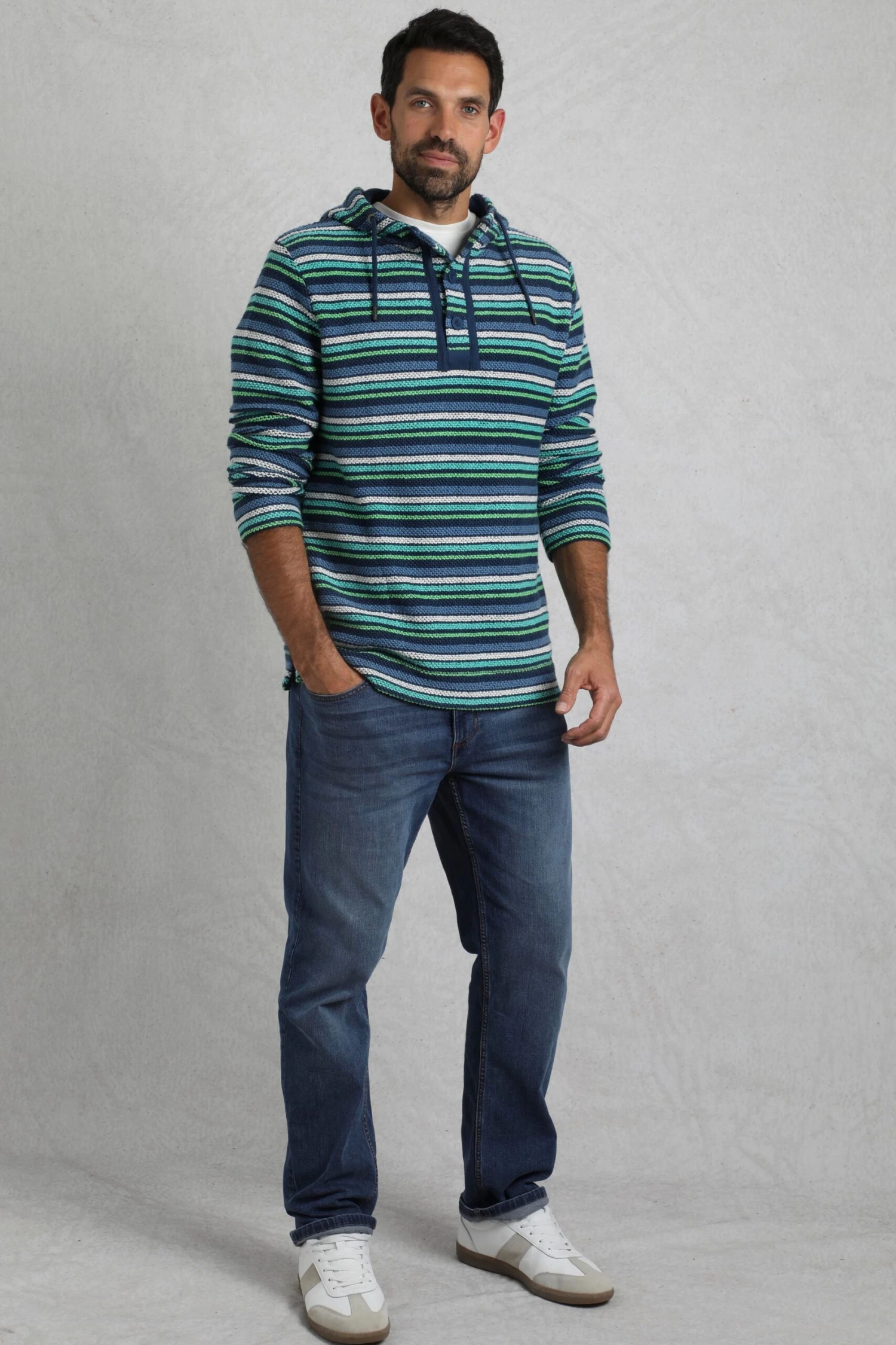 We love a stripe at Weird Fish and our Payson Button Neck Striped Eco Macaroni Hoodie has all the stripes! This retro 90s feel hoodie has a slouchy fit, with a button neck, and hidden side pockets. With its good sized hood, and bold stripe, this hoodie was made for sunny days that days that can turn chilly.