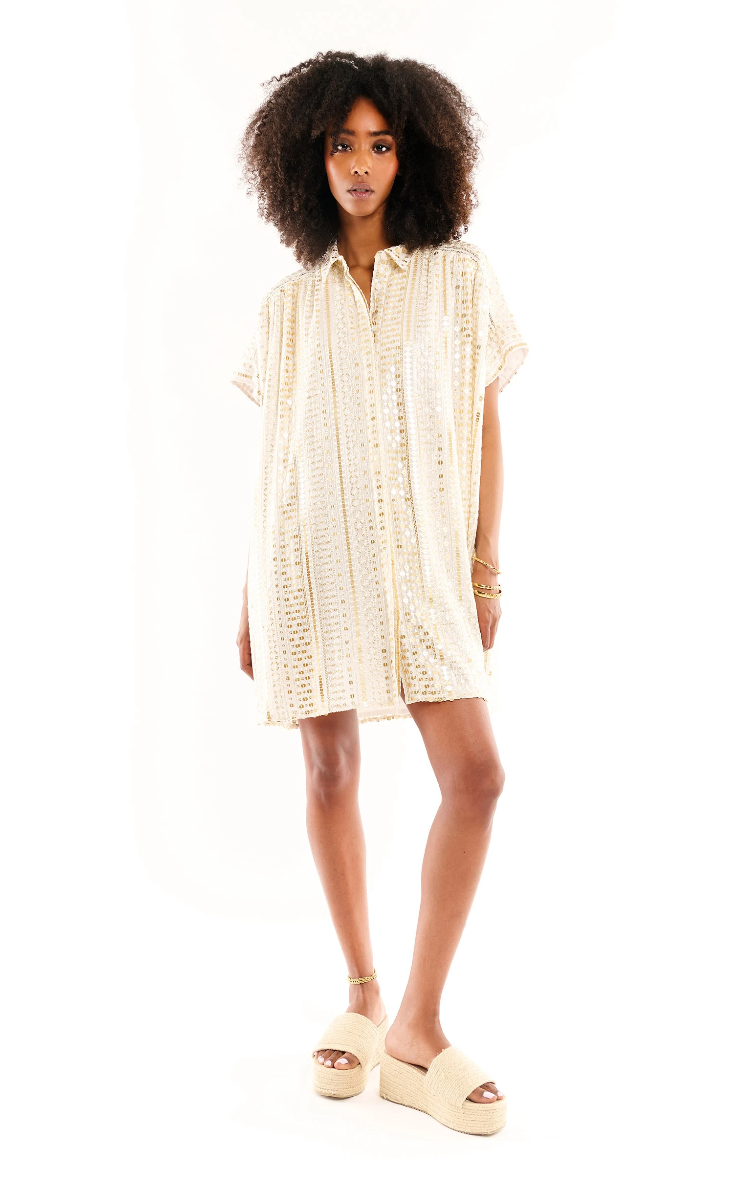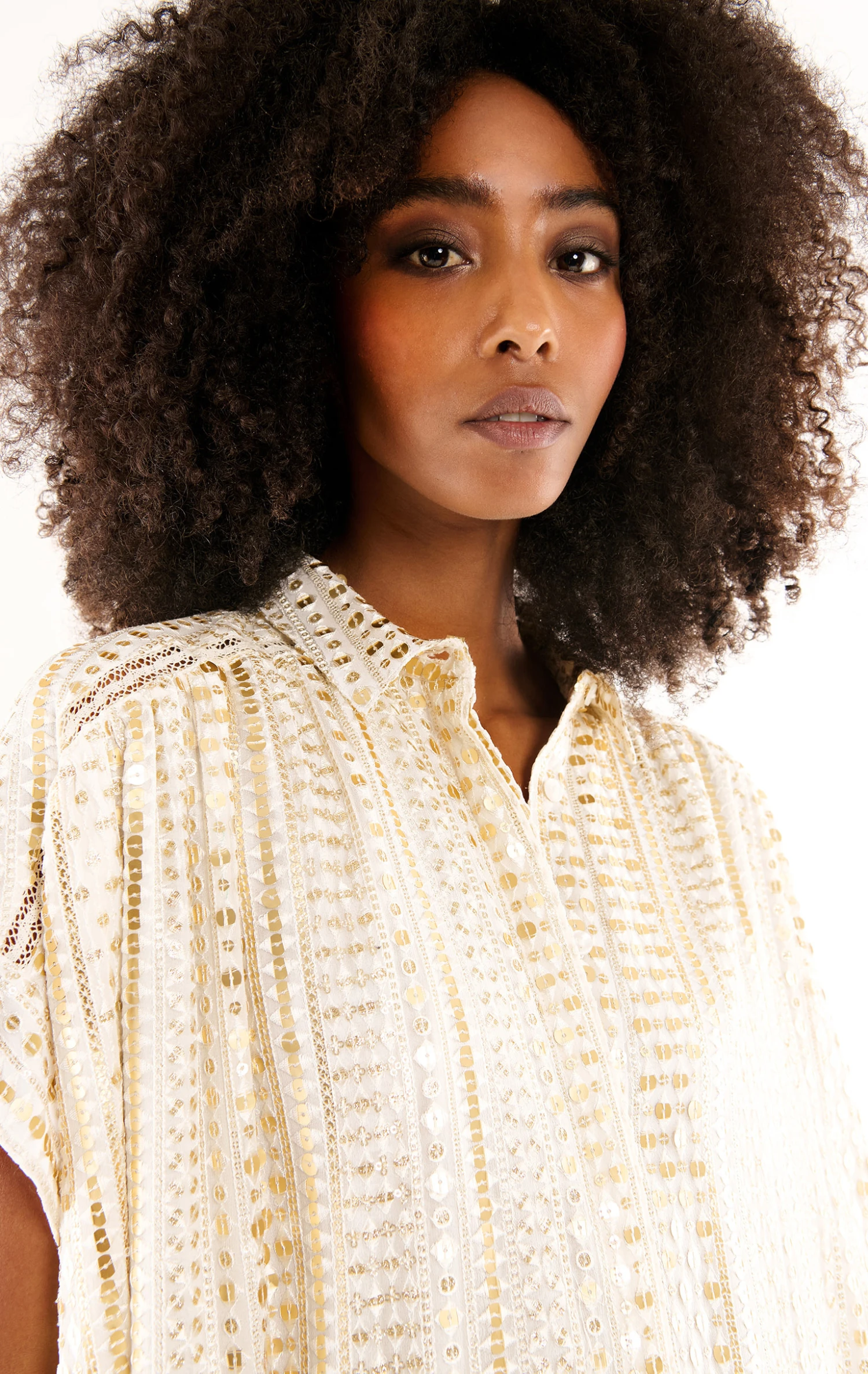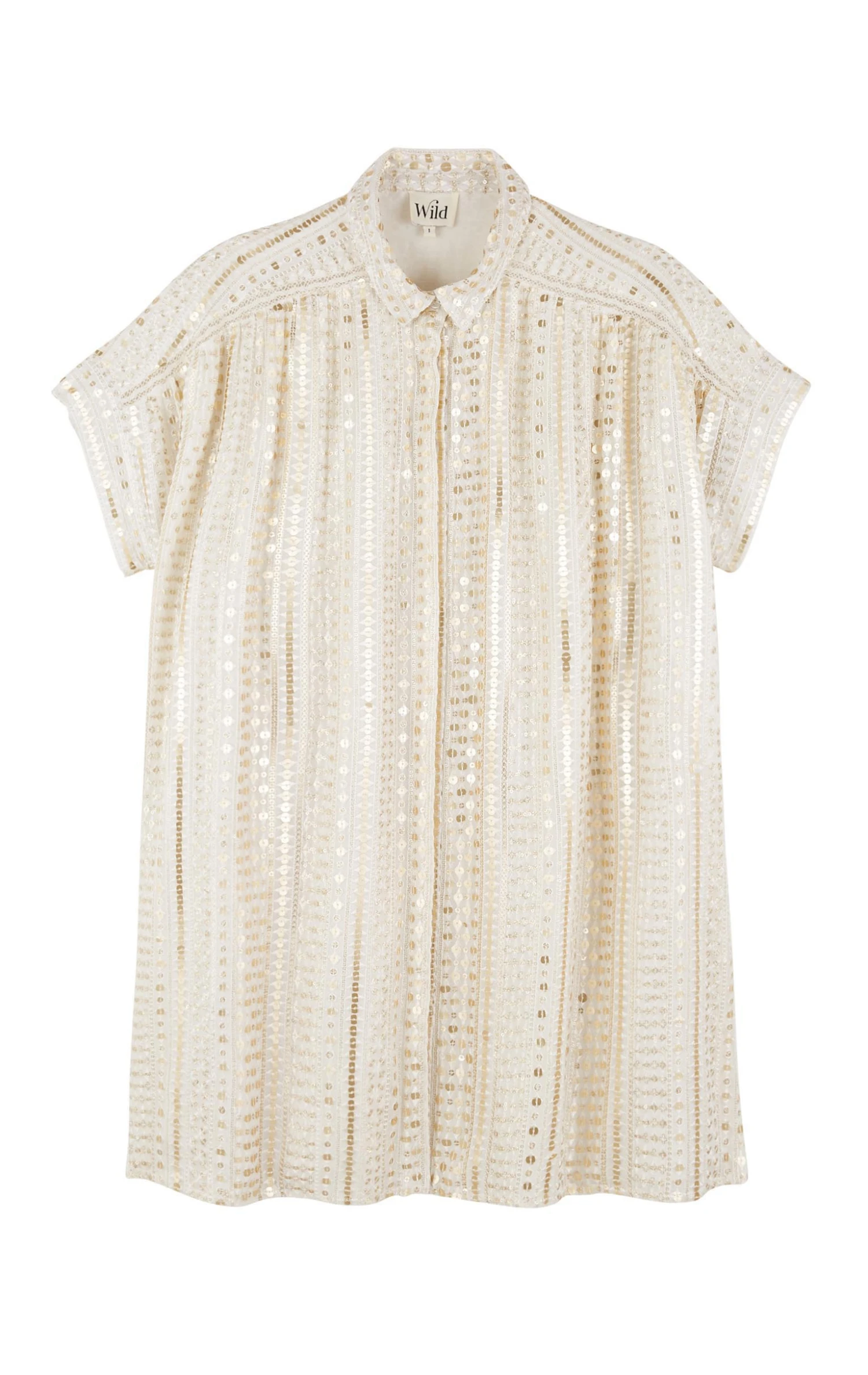 Aussi sulfureuse, détonante et exceptionnelle que la chanteuse, notre robe Rihanna est une robe chemise oversize aux manches courtes et amples et à l’adorable petit col italien. Confectionnée d’un somptueux voile entièrement brodé de sequins et doublé d’un coton pour éviter la transparence, elle se décline en deux couleurs, noire et blanche, et demeure toute aussi spectaculaire dans l’une comme dans l’autre.