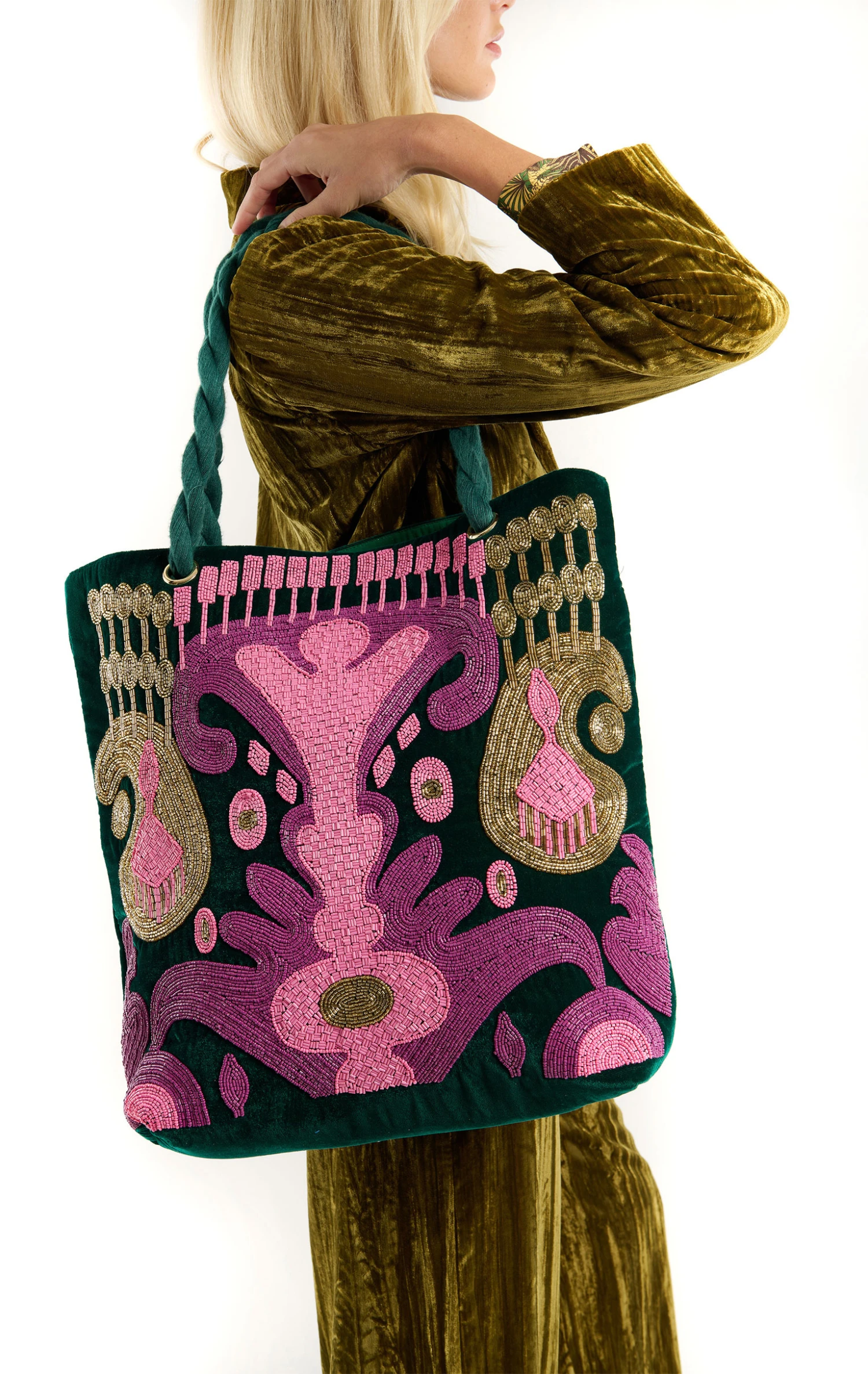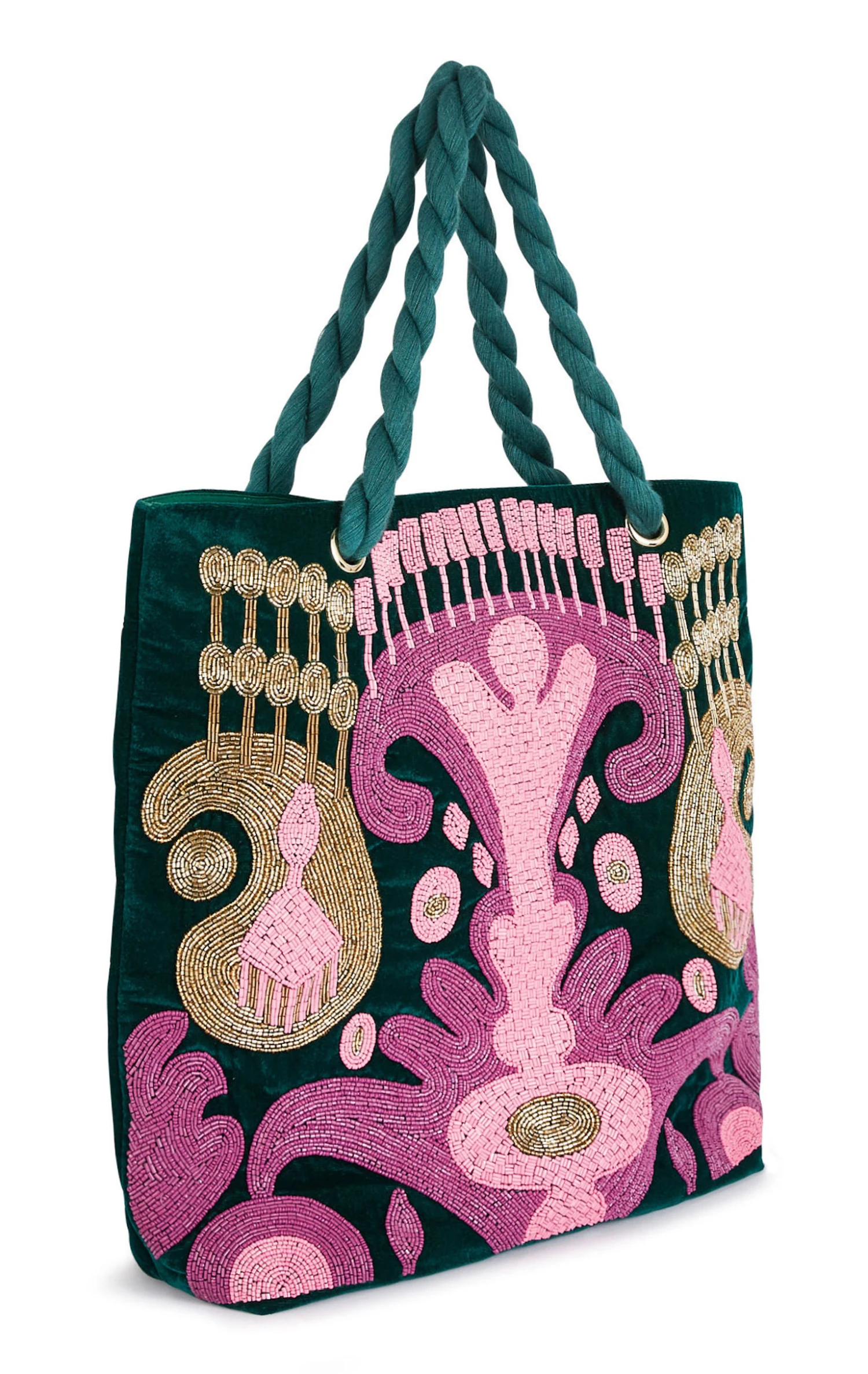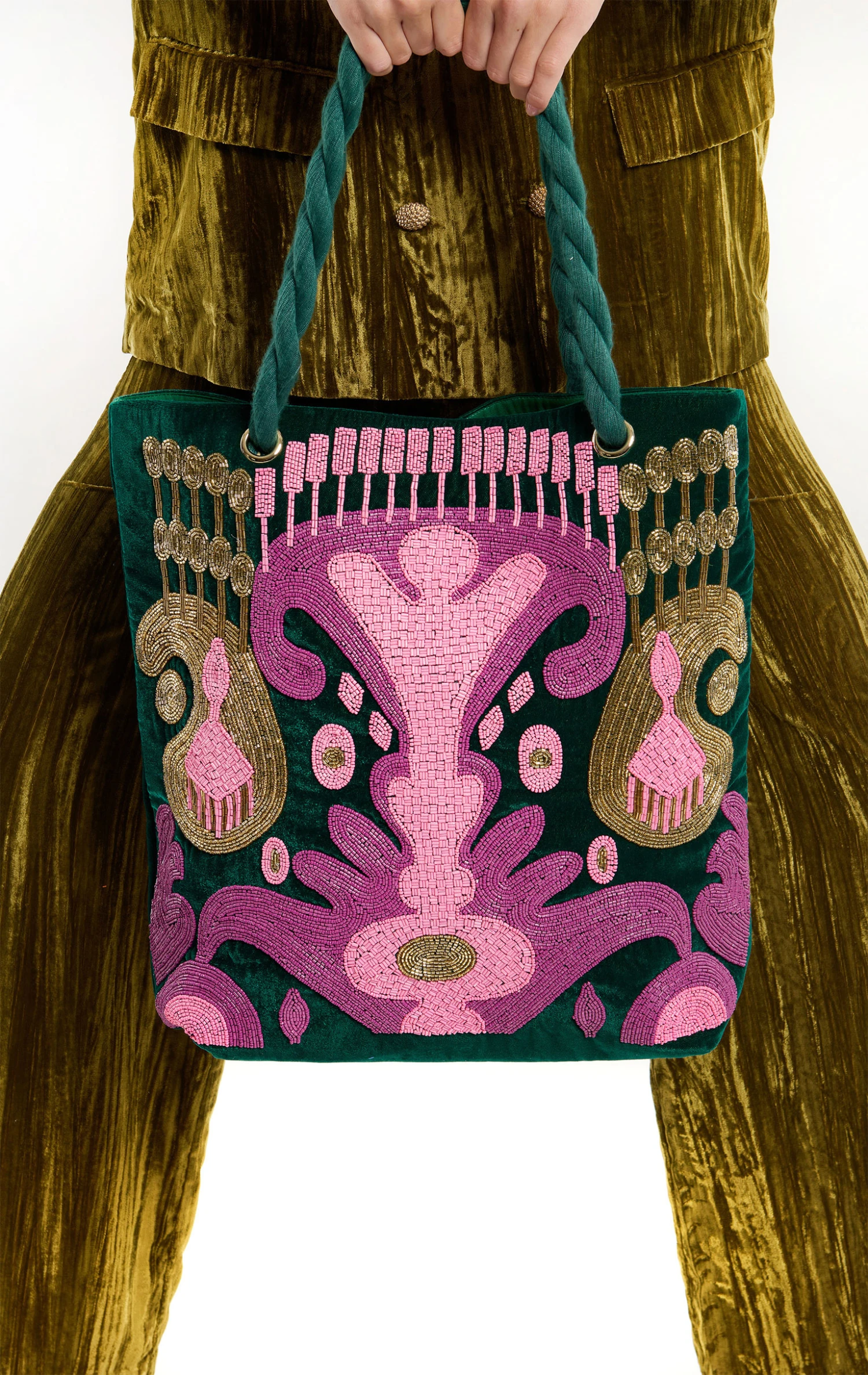 Chaque détail est méticuleusement brodé de perles de rocaille roses, fuchsia et dorées, enveloppant toute la surface du cabas et en faisant une pièce créatrice exceptionnelle. Disponible en deux couleurs, le cabas Awake se distingue par son élégance unique.