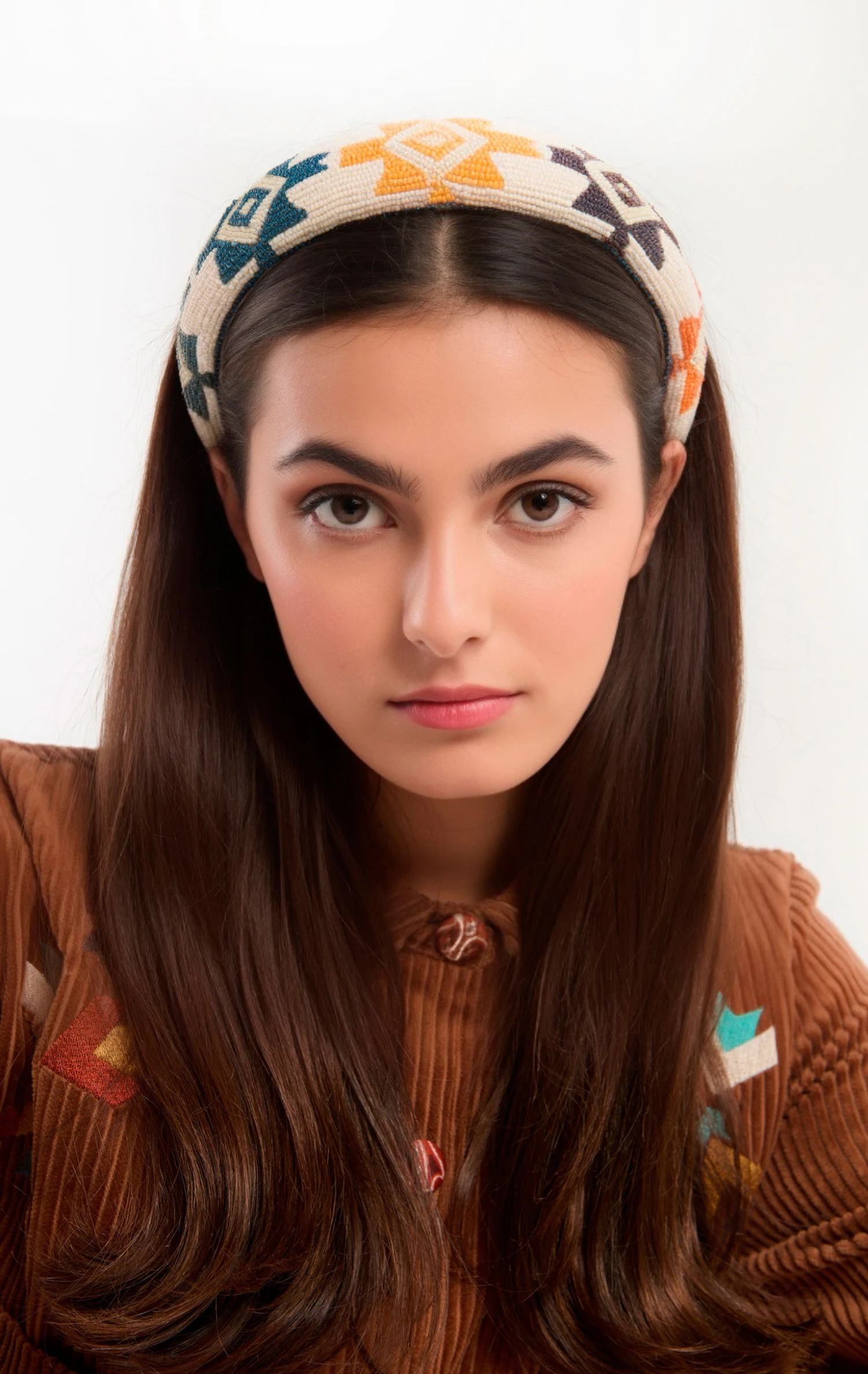 S’inspirant des motifs géométriques Navajo, chers à Wild, ce ravissant serre-tête entièrement orné de perles apporte une élégance etnique à votre style.